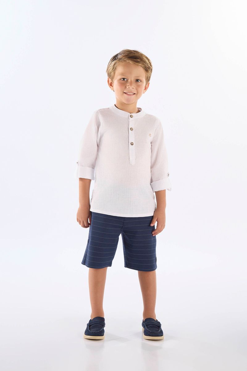 Bermuda infantil para menino em malha risca de giz, ideal para garantir conforto e estilo nos dias mais quentes. Confeccionada em tecido viscose com elastano e poliéster, proporcionando caimento leve e toque macio. Possui cós com elástico permitindo ajuste sem machucar os pequenos, botão de pressão, bolsos funcionais, braguilha falsa com acabamento detalhado e bainha com pesponto duplo. Além da etiqueta personalizada da marca, proporcionando exclusividade para a peça. Uma opção versátil que combina com camisetas polos ou básicas para qualquer ocasião.
