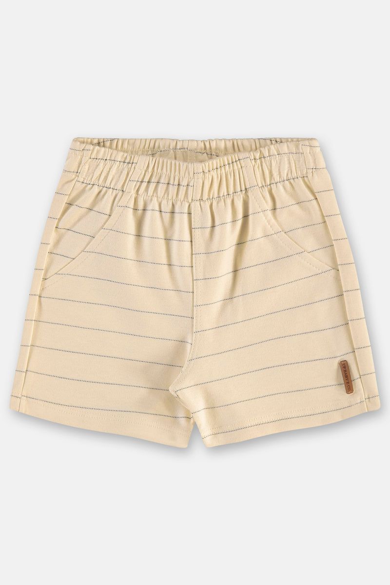Bermuda para bebê menino, feita em malha risca de giz (uma composição de viscose, elastano e poliéster) desenvolvida para oferecer conforto e durabilidade. Esta peça versátil para o dia a dia possui cintura com elástico para melhor ajuste e um bolso falso que adiciona um detalhe extra. Para maior resistência, conta com costura dupla reforçada no gancho frontal e traseiro, ideal para acompanhar as áreas de maior movimento.