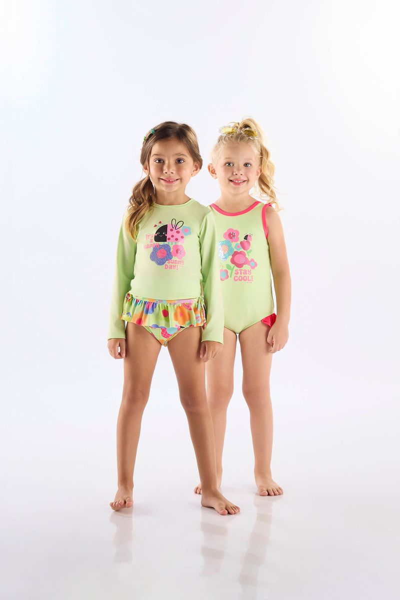 Biquíni Infantil FPS+50 com Blusa Manga Longa e Calcinha (Verde Limão) Up Baby