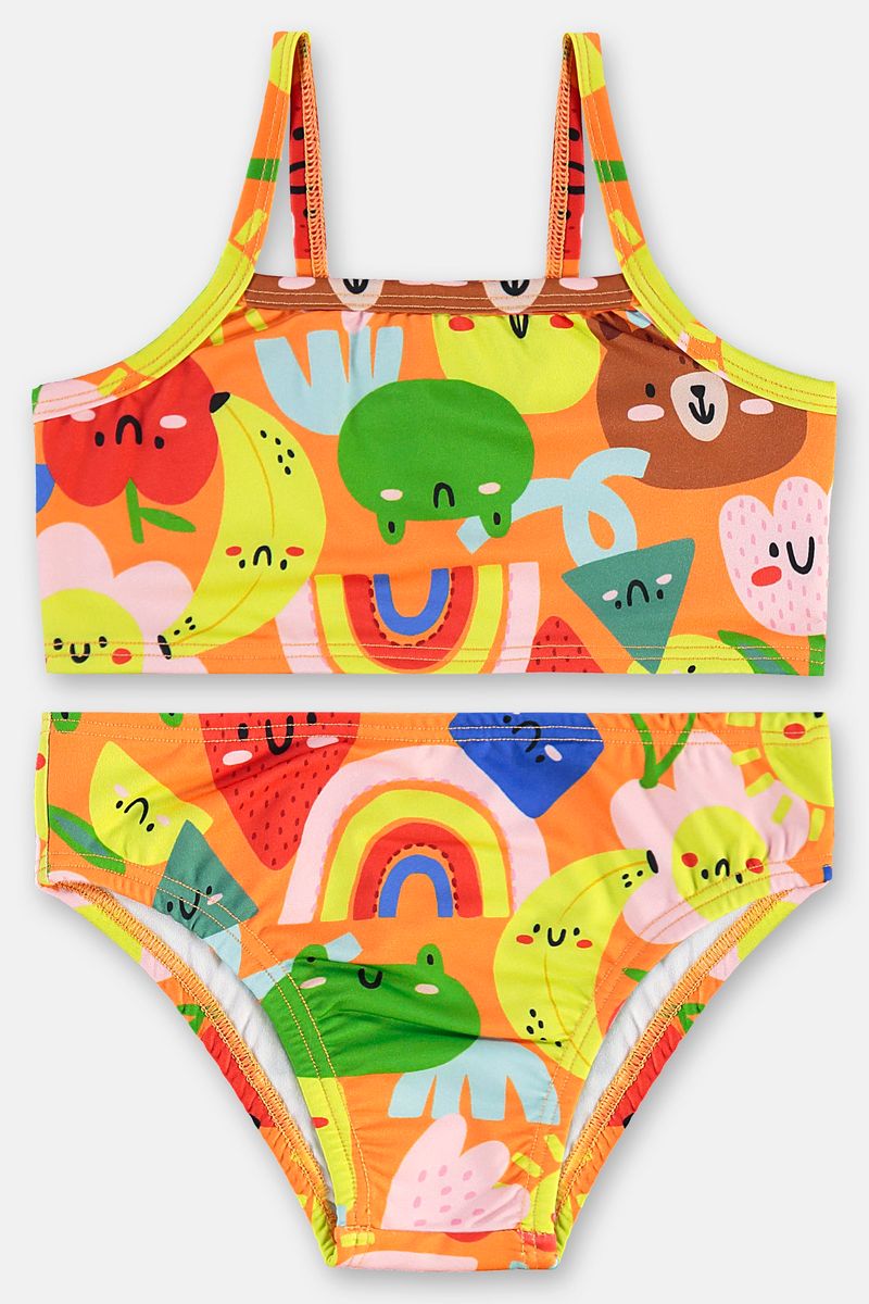 • Biquíni Infantil, ideal para os dias de sol e diversão na praia ou piscina. Confeccionado em malha beachwear (poliéster com elastano), oferece toque macio e liberdade de movimento. forro interno em poliamida proporciona maior segurança, enquanto a tecnologia com FPS 50+ ajuda a proteger contra os raios solares. As estampas são divertidas com cores vibrantes. Perfeito para compor looks alegres de verão.