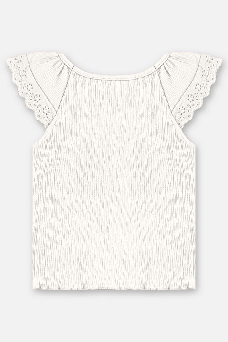 Blusa infantil para menina, confeccionada em malha texturizada com elastano, que proporciona conforto e liberdade de movimento. O modelo possui mangas raglan com babados franzidos e acabamento delicado em fru-fru, além de plaquinha decorativa na barra. Ideal para compor looks frescos e charmosos nos dias quentes.