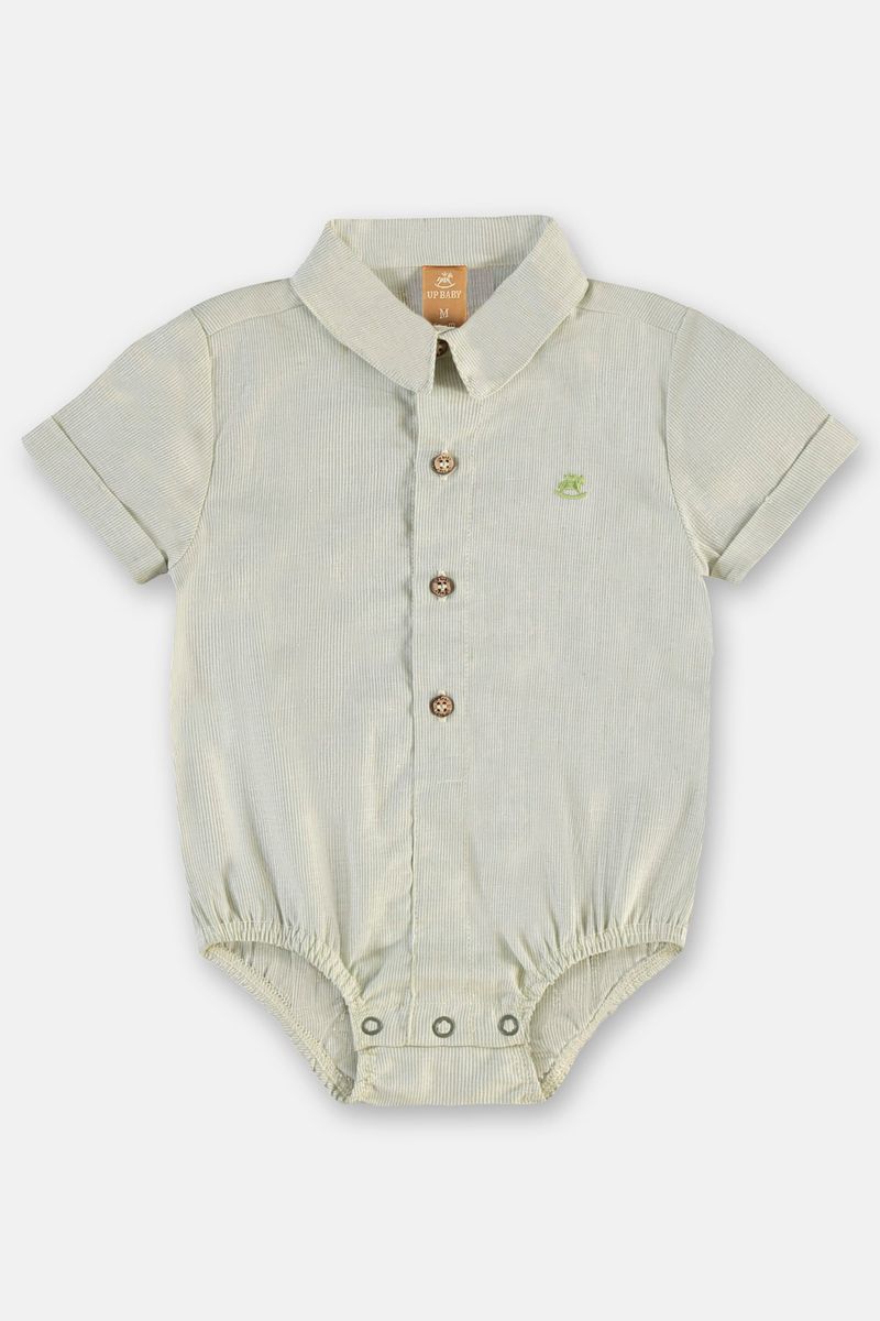 Body camisa para bebê menino de manga curta, uma peça prática e elegante para diversas ocasiões. Produzida em tecido de algodão com linho, oferece conforto e respirabilidade durante o uso. Possui gola social, fechamento frontal por botões e entrepernas por botões de pressão, além de acabamento com pesponto delicado. O design versátil possibilita combinações tanto em momentos casuais quanto em ocasiões especiais. É uma escolha confortável e fácil de vestir para o dia a dia do seu pequeno.