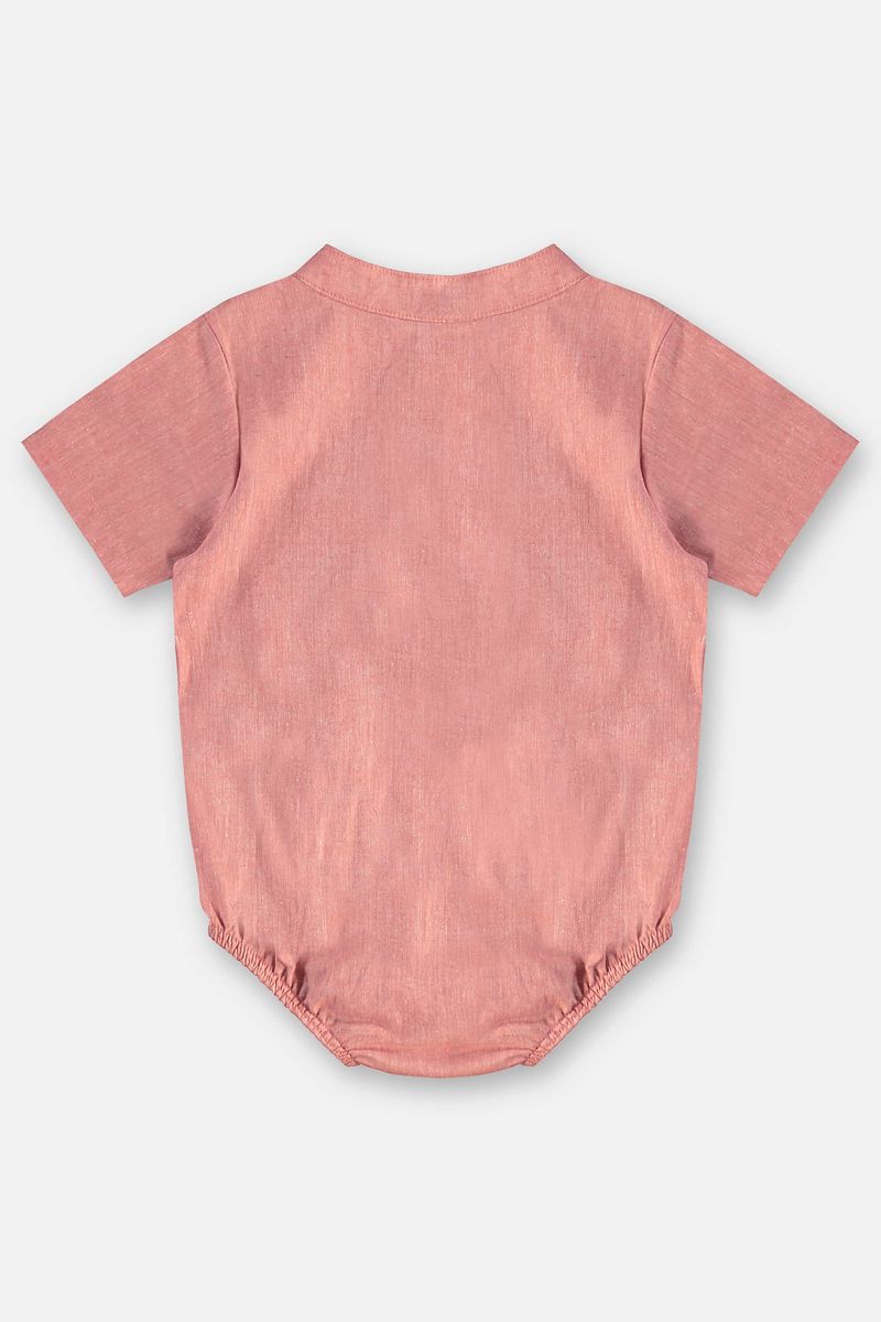 Body camisa para bebê menino confeccionado em tecido de algodão com linho, que oferece leveza, frescor e elegância. Possui gola arredondada, fechamento frontal com botões e detalhe de bordado delicado no peito. Conta ainda com abertura entrepernas com botões de pressão, tornando a peça prática na hora de trocar o bebê. Ideal para ocasiões especiais, une conforto e um visual arrumadinho.