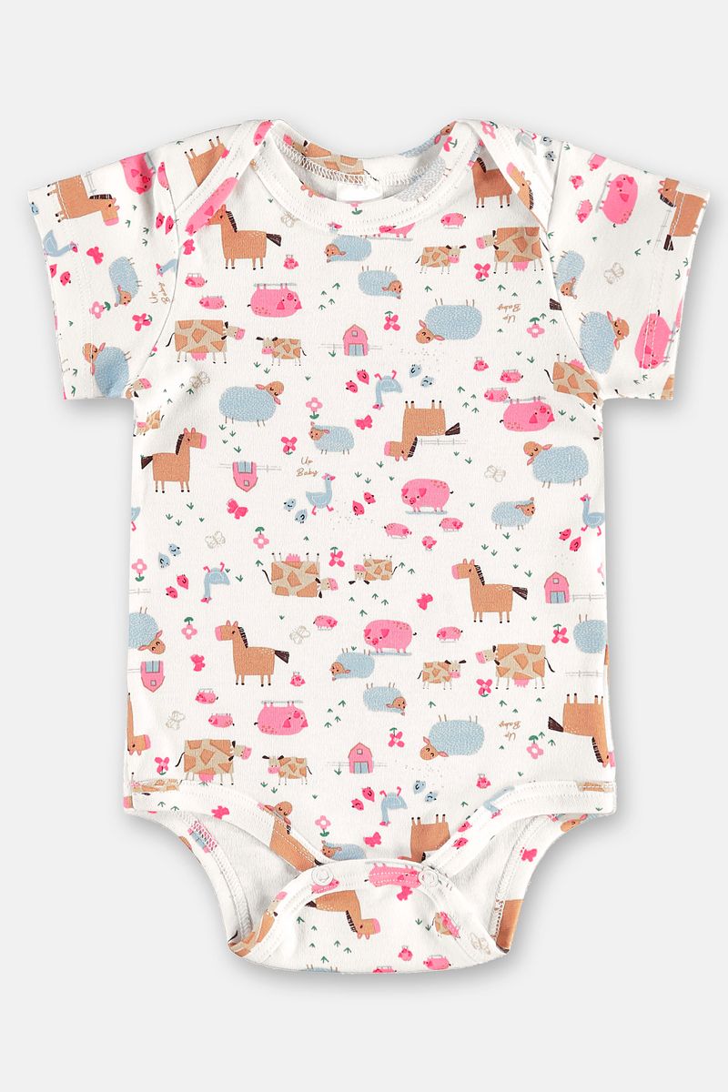Com toque macio e visual alegre, este body de manga curta em suedine é perfeito para o dia a dia da bebê menina. A estampa colorida e divertida deixa o look encantador, enquanto o tecido leve garante frescor. O fechamento inferior com botões de pressão facilita as trocas, e o acabamento com bainha e debrum proporciona firmeza e conforto. Uma ótima opção para compor produções leves e descontraídas.