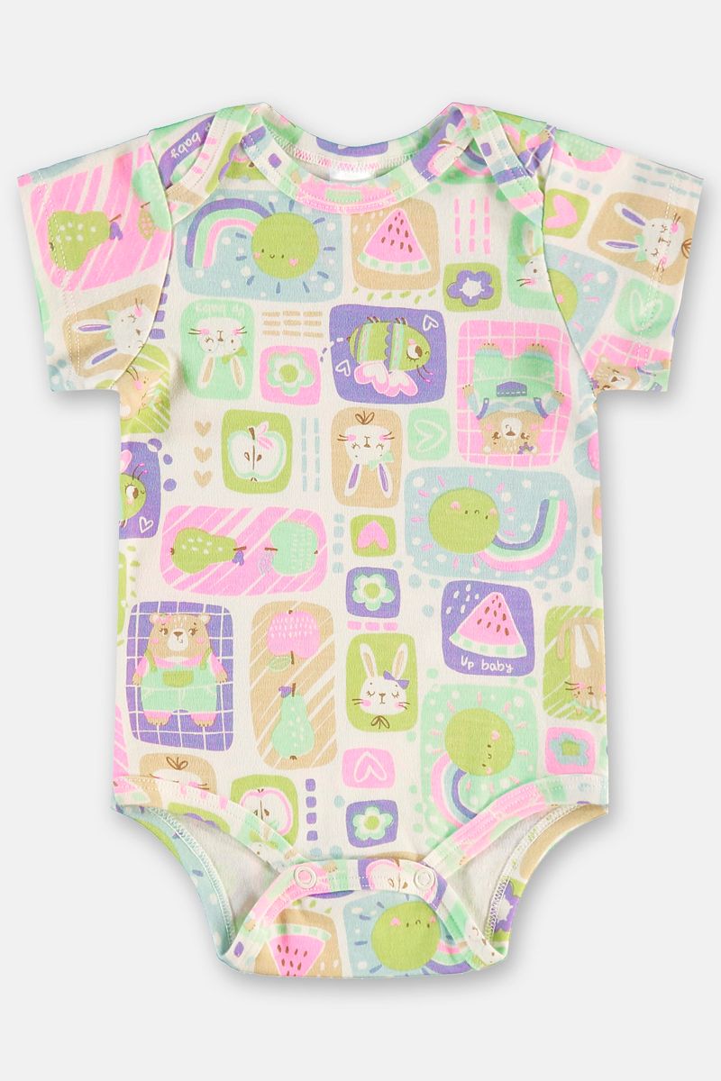 Com toque macio e visual alegre, este body de manga curta em suedine é perfeito para o dia a dia da bebê menina. A estampa colorida e divertida deixa o look encantador, enquanto o tecido leve garante frescor. O fechamento inferior com botões de pressão facilita as trocas, e o acabamento com bainha e debrum proporciona firmeza e conforto. Uma ótima opção para compor produções leves e descontraídas.
