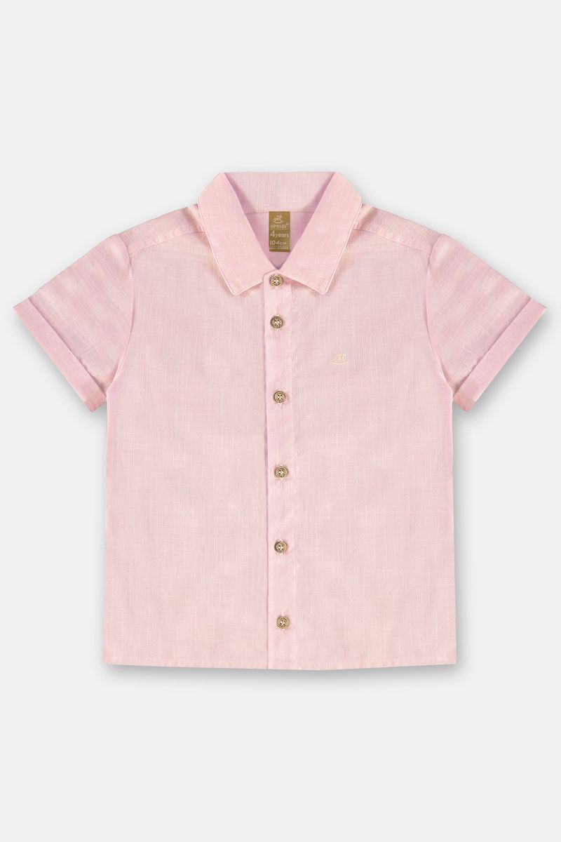 Camisa Infantil para menino que combina estilo e praticidade, confeccionada em tecido leve de algodão voil, tecido leve, macio e respirável, ideal para os dias quentes. Conta com gola esportiva, abertura frontal com botões de efeito madeira, além do bordado do ícone da marca no peito proporciona um toque de exclusividade. Uma peça versátil, que pode ser usada em combinações sociais ou para looks casuais arrumados, sempre com estilo e conforto.