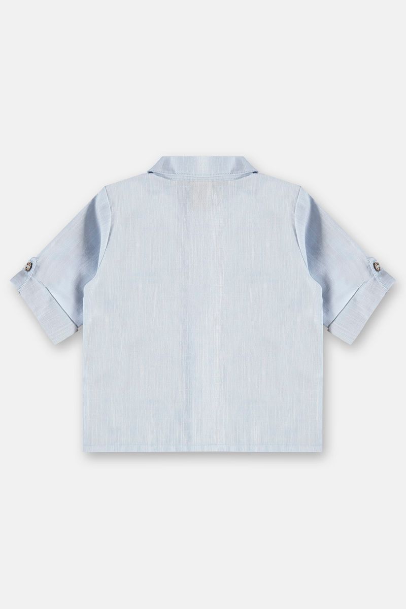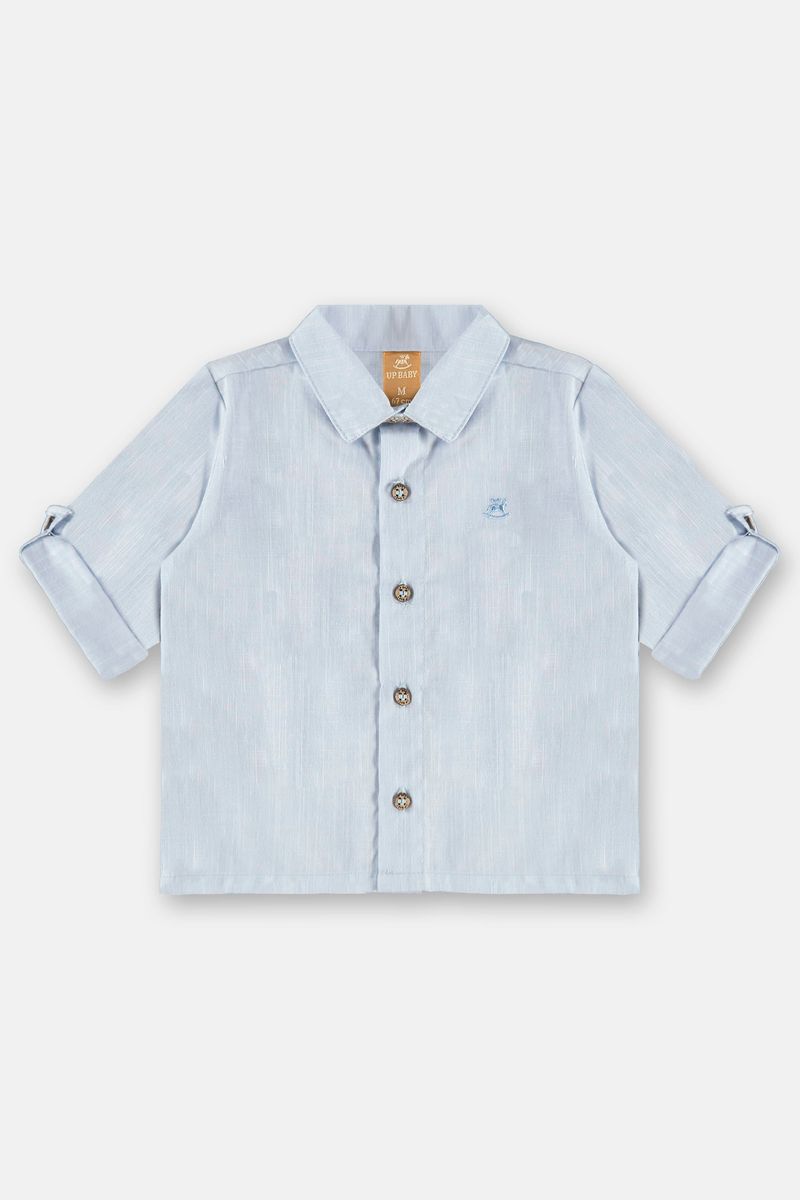Camisa de manga longa para bebê menino, uma peça versátil para diferentes ocasiões. Confeccionada em tecido de algodão voil, possui gola social e fechamento frontal com botões resistentes. O grande diferencial é o detalhe de martingale nas mangas, que permite dobrá-las e ajustá-las, tornando o modelo prático e confortável. Ideal para compor looks sociais ou casuais, combina facilmente com calças e bermudas.