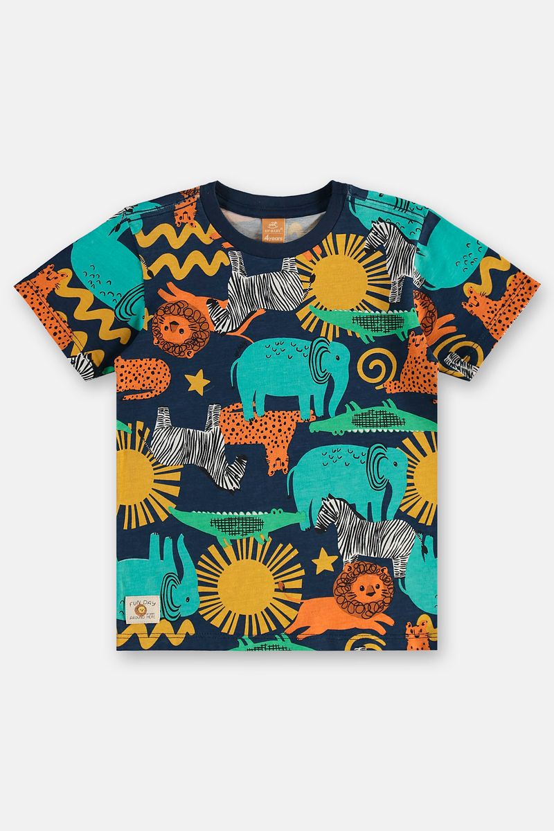 Camiseta Infantil Safári em Algodão (Azul Marinho) Up Baby