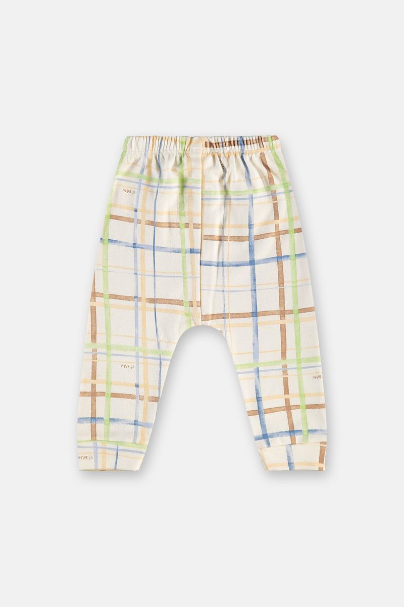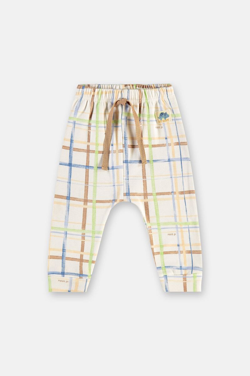 Este conjunto para bebê menino une conforto e estilo com um toque divertido. O body em suedine macio apresenta estampa de dinossauro com efeito puff e abertura no entrepernas com botões de pressão, facilitando a troca. A calça vem com estampa xadrez, cós elástico rebatido, punhos de 3 cm e cadarço decorativo, garantindo ajuste suave e visual moderno. Ideal para passeios ou momentos em casa, é um look prático e cheio de charme.