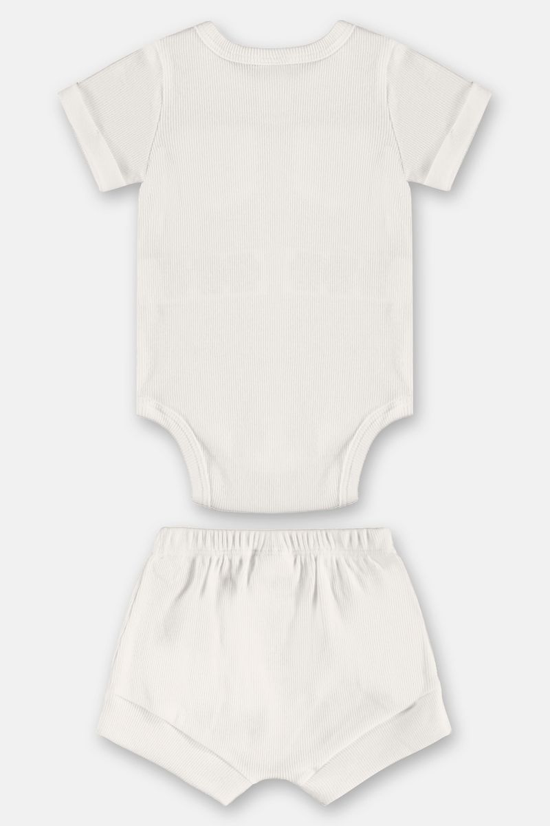 Este conjunto unissex para bebê faz parte da nossa linha Nature, a escolha ideal para a rotina do seu pequeno com conforto e estilo. Composto por body e short em ribana sustentável, tingido com corantes naturais, ele garante o melhor para os pequenos em todas as estações. O body de mangas curtas possui um prático bolsinho no peito e botões de pressão entrepernas, que facilita a vida dos papais na hora de trocar de roupa ou fralda. O short complementa o look com cós elástico, cadarço decorativo e barra reforçada, garantindo ajuste perfeito.