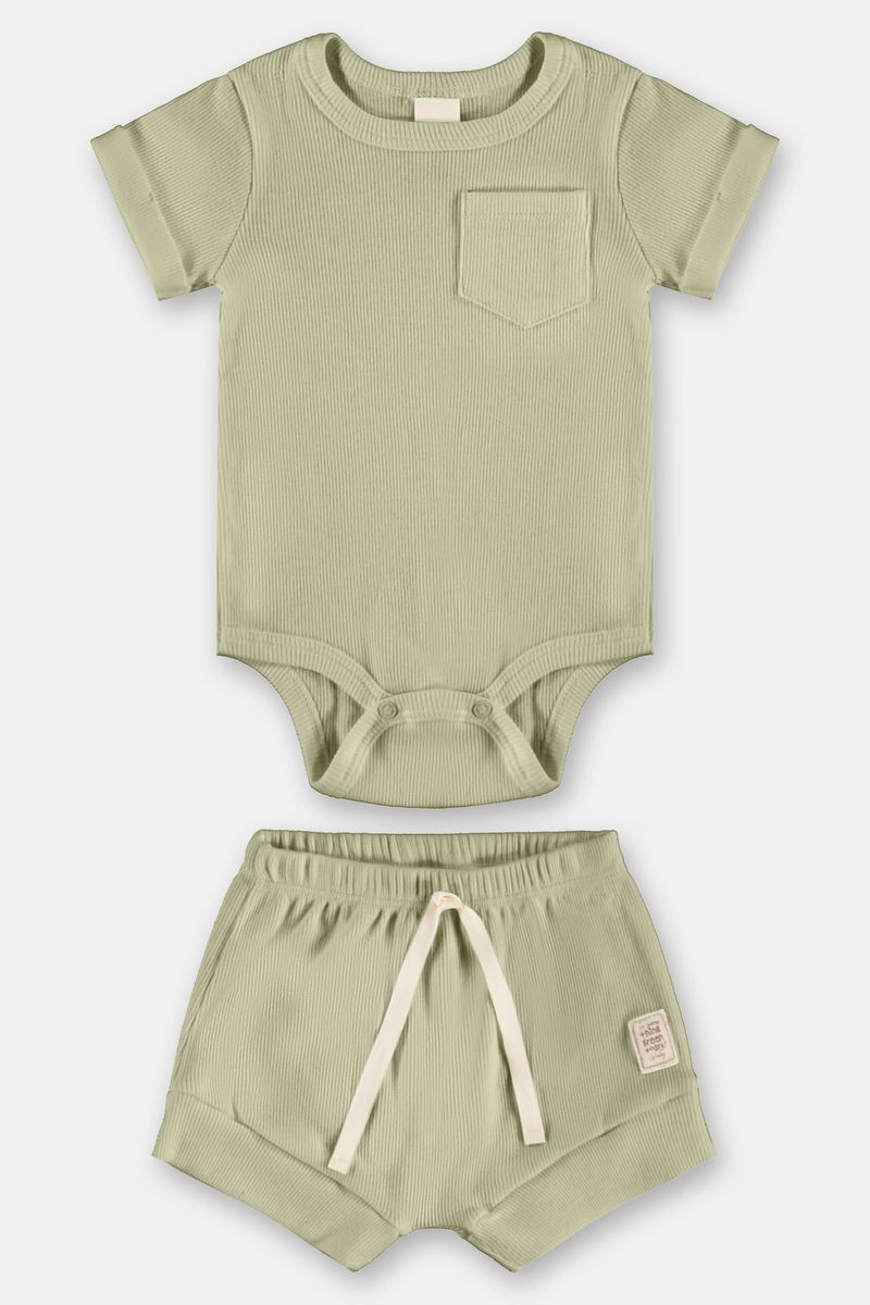 Este conjunto unissex para bebê faz parte da nossa linha Nature, a escolha ideal para a rotina do seu pequeno com conforto e estilo. Composto por body e short em ribana sustentável, tingido com corantes naturais, ele garante o melhor para os pequenos em todas as estações. O body de mangas curtas possui um prático bolsinho no peito e botões de pressão entrepernas, que facilita a vida dos papais na hora de trocar de roupa ou fralda. O short complementa o look com cós elástico, cadarço decorativo e barra reforçada, garantindo ajuste perfeito.