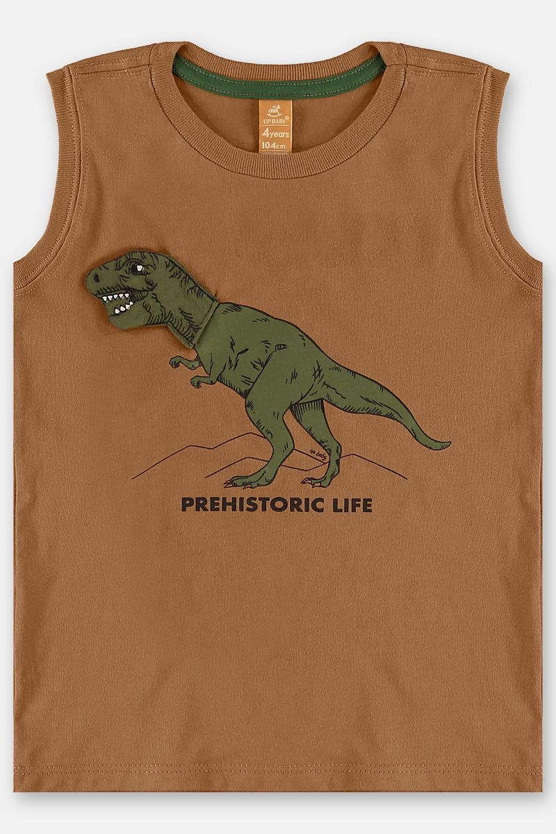 Conjunto infantil masculino composto por regata em meia malha (algodão) e bermuda em moletom sem felpa (algodão e poliéster). A regata possui gola redonda em ribana e estampa de dinossauro com aplique bordado, que adiciona toque lúdico e especial a peça. A bermuda tem cós com elástico e cadarço funcional, além de bolsos frontais, complementando o conjunto e tornando-o confortável e ideal para os dias quentes.