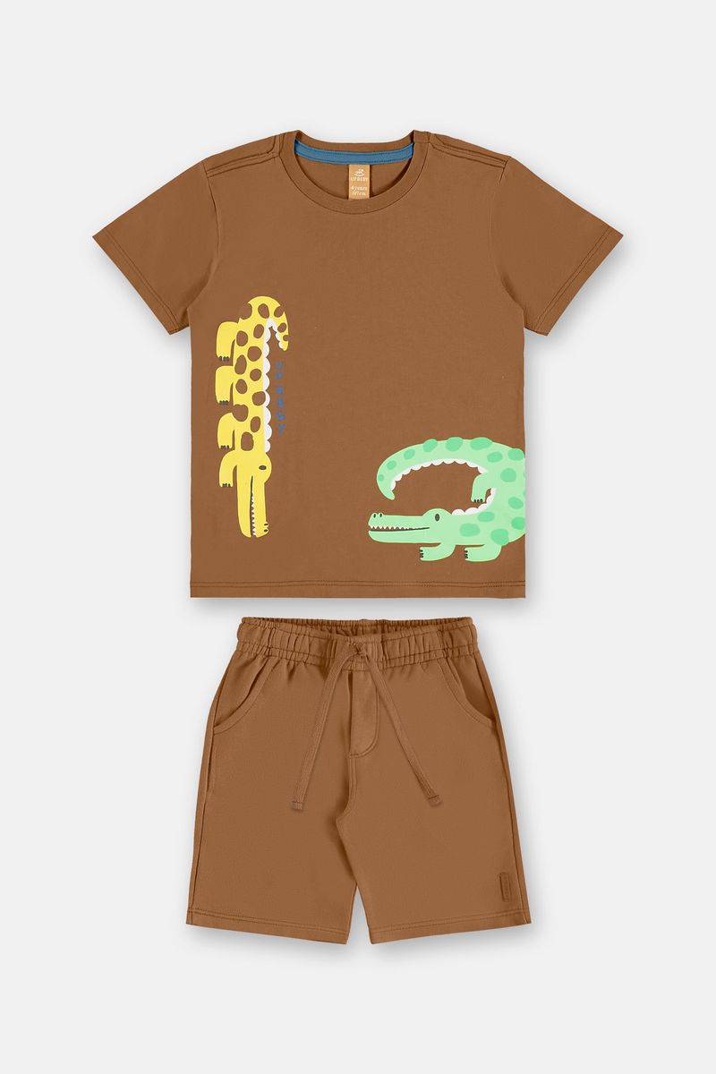 Conjunto Infantil, ideal para compor looks leves e confortáveis no verão. A camiseta é confeccionada em tecido de algodão leve e macio, possui gola arredondada, mangas curtas, costura reforçada e estampa divertida de dois crocodilos. Acompanhando a bermuda composta em moletom sem felpa, tecido de algodão com poliéster, oferecendo conforto e liberdade de movimento para brincar à vontade. contém cós com elástico, braguilha falsa, bolso e cadarço funcional garantindo praticidade para o dia a dia, além da etiqueta personalizada discreta, trazendo exclusividade para a peça. Um look versátil para passeios e momentos de lazer.