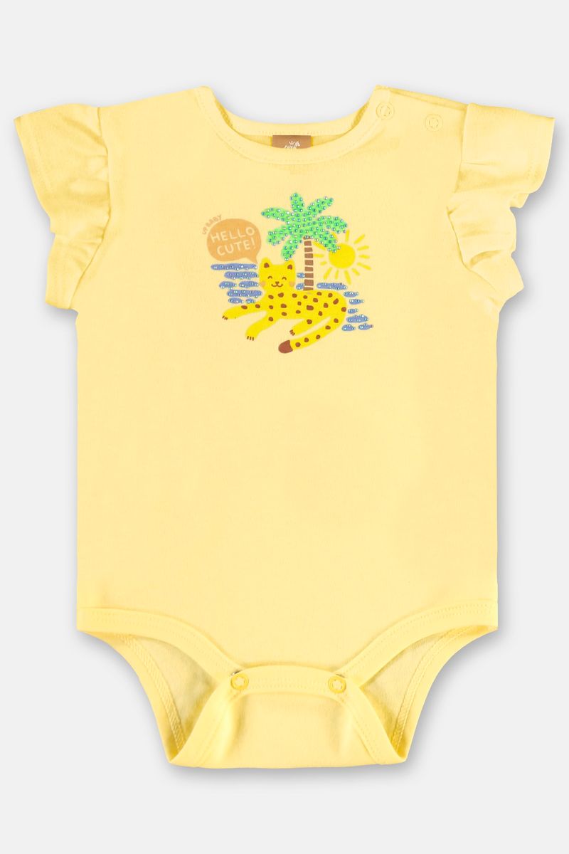 Ideal para passeios e momentos de lazer, este conjunto para bebê menina combina body em suedine com estampa tropical e detalhe em strass com short em meia malha estampada. As mangas franzidas e os acabamentos reforçados garantem um visual delicado e durável. A abertura inferior com botões de pressão proporciona mais praticidade, enquanto o short possui elástico confortável na cintura. Um look leve, fresquinho e cheio de estilo para o verão.