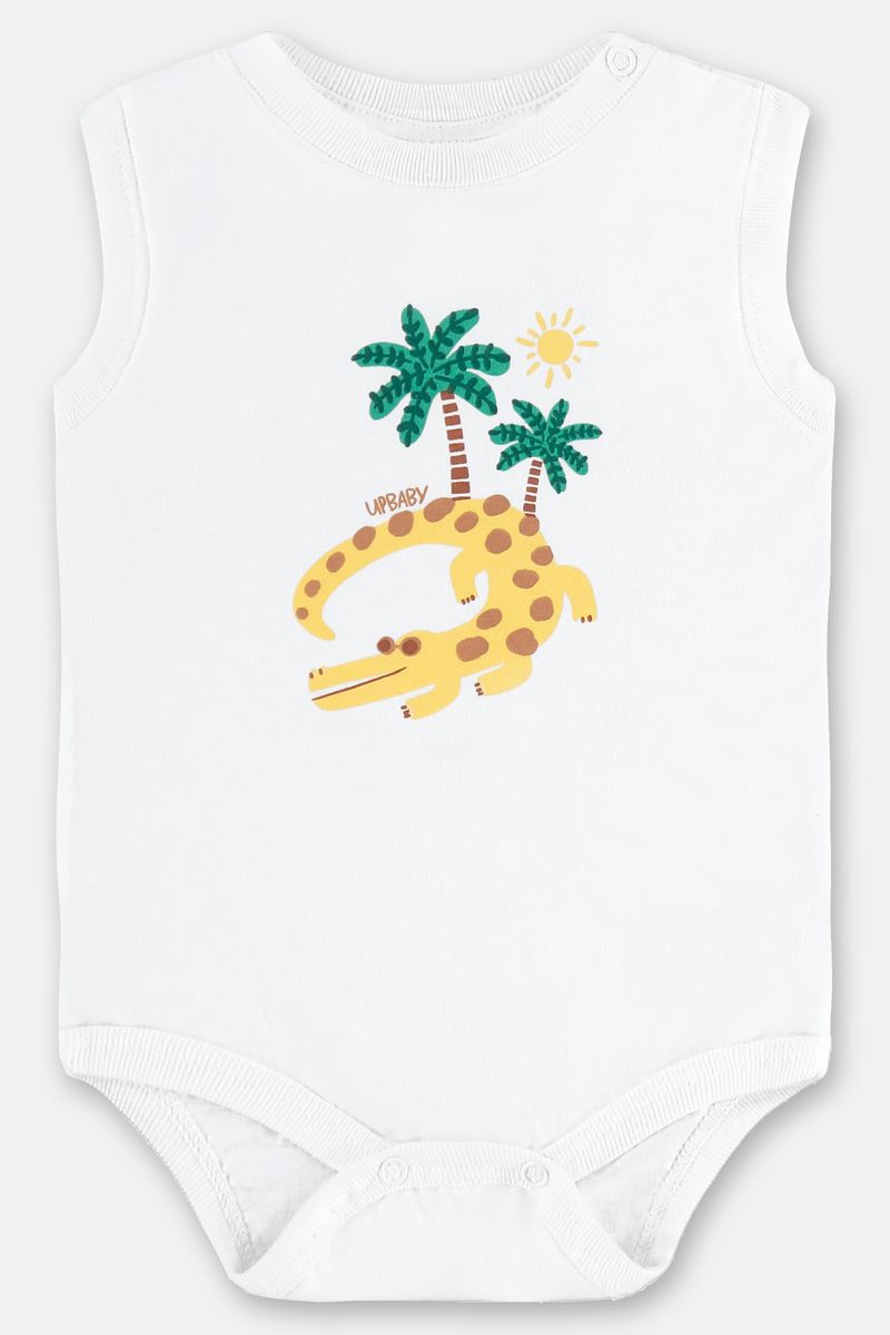 Com visual alegre e muito conforto, o conjunto com body regata e bermuda é perfeito para os dias mais quentes do ano. O body sem mangas apresenta estampa de jacaré tropical, cavas amplas e abertura no ombro com botão de pressão. A bermuda em microfibra estampada com elastano leve possui cós com elástico rebatido, cadarço decorativo e costuras reforçadas, garantindo caimento impecável. Um conjunto prático e estiloso para acompanhar os pequenos em brincadeiras e passeios.
