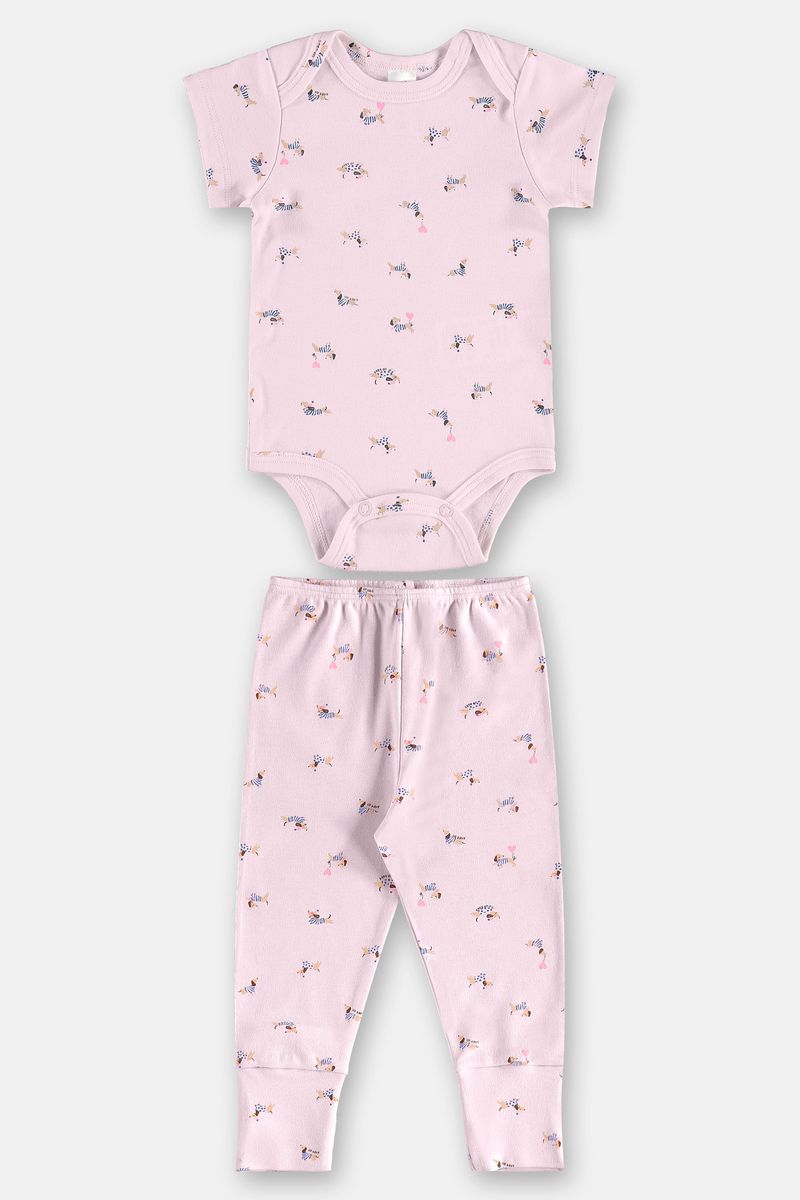 • Conjunto bebê menina, confeccionado em suedine (Algodão), oferecendo suavidade e respirabilidade para a pele delicada. Conta com body manga curta, possui fechamento entrepernas com botões de pressão, garantindo praticidade nas trocas, com estampa fofas e coloridas. A calça com elástico confortável e punho moldado, contém estampa complementar ao body, que completa o look com segurança e liberdade de movimentos. Ideal para o dia a dia das pequenas.