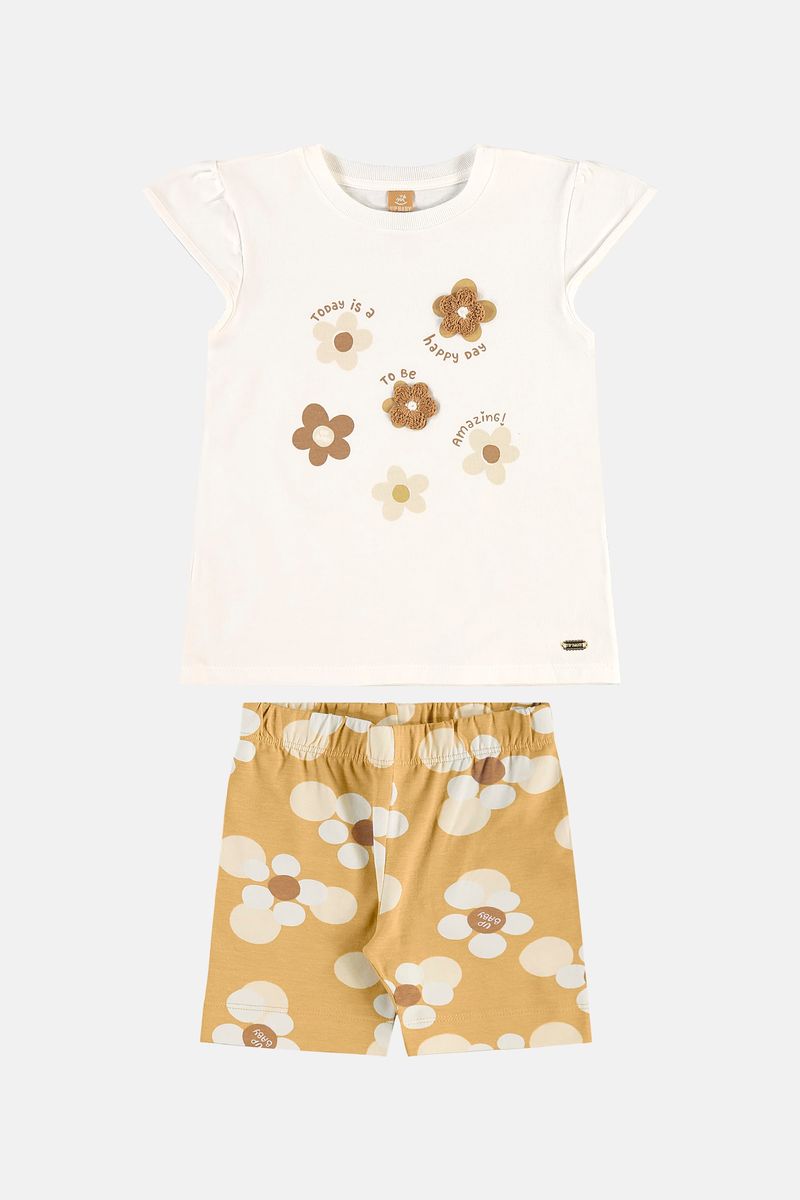 Conjunto infantil feminino que garante conforto e liberdade de movimento para o dia a dia. Conta com blusa em algodão, que traz detalhe especial com aplicação de flor em crochê costurada, possui costura reforçada, manga curta com franzido localizado, gola arredondada em ribana, além de plaquinha metálica personalizada, detalhes que deixam a peça ainda mais especial. Acompanha bermuda em cotton, tecido de algodão e elastano, leve e confortável, possui elástico na cintura, que oferece caimento ajustado e prático, e estampa floral, que deixa o look mais divertido e estiloso. Uma combinação prática, delicada e cheia de estilo para as pequenas.
