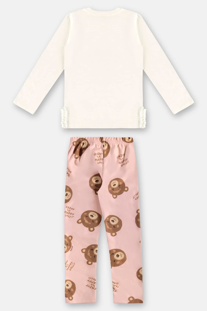 Conjunto infantil para menina, composto por um blusa confeccionada em cotton (algodão e elastano) e por uma calça legging em malha comfy peluciada (poliéster e elastano). A blusa possui estampa de ursinhos com strass no peito, e babado franzido com abertura lateral. A calça garante aconchego e liberdade de movimento, conta com um cós elástico ajustável que proporciona um caimento confortável. Ideal para um look quentinho e cheio de estilo, a escolha certa para qualquer ocasião!