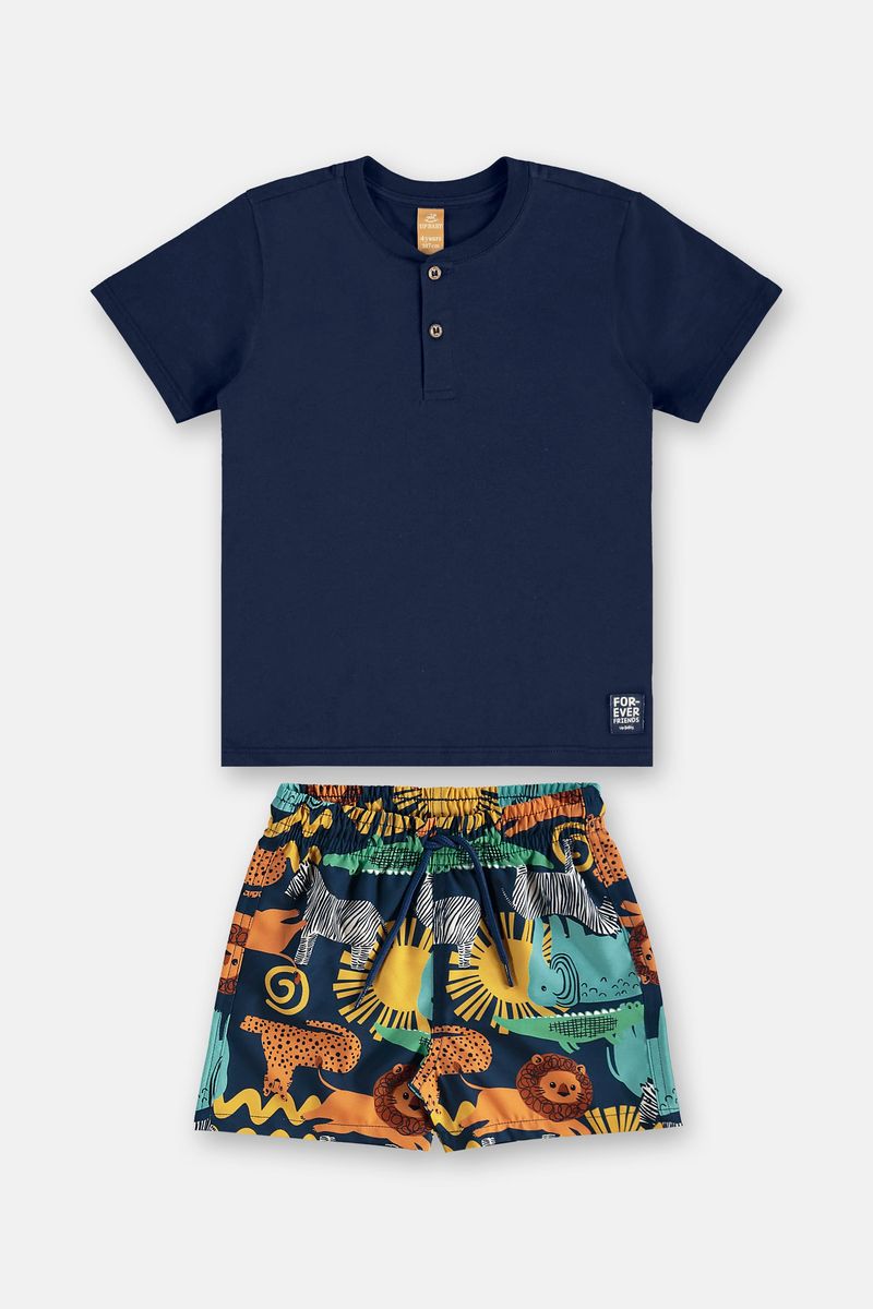 Conjunto Infantil com Camiseta e Short Safári (Azul Marinho) Up Baby