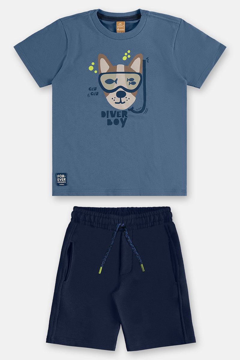 Conjunto Infantil Diver Boy com Camiseta e Bermuda (Azul) Up Baby
