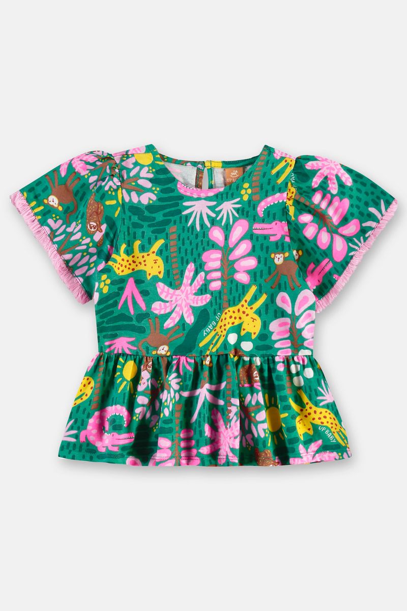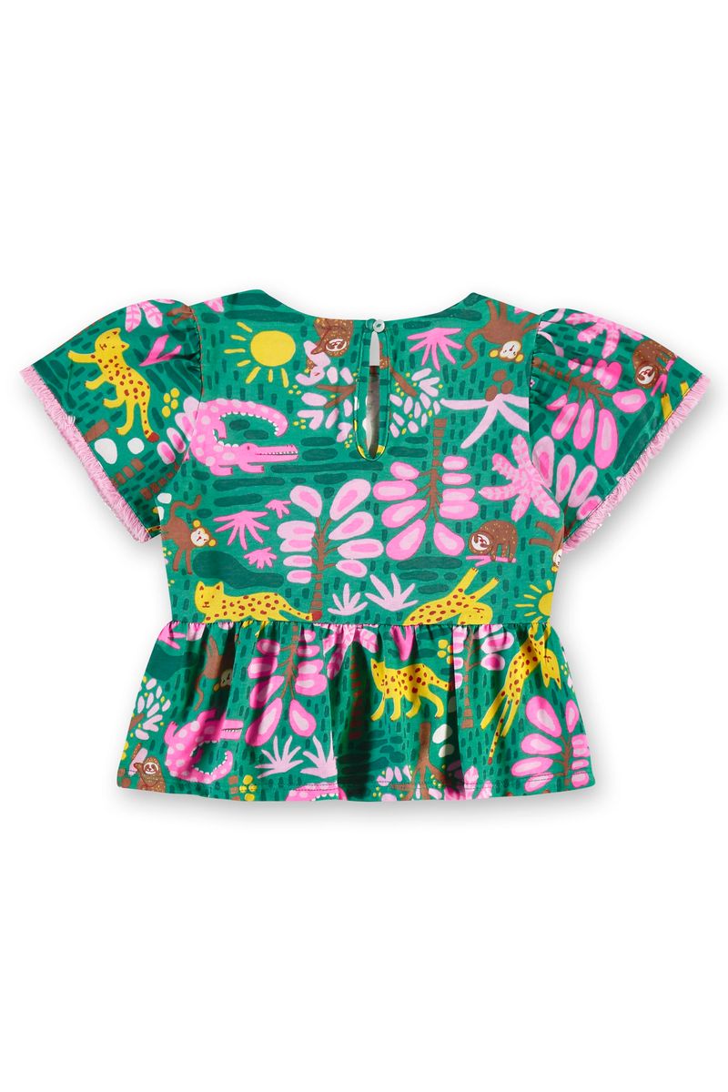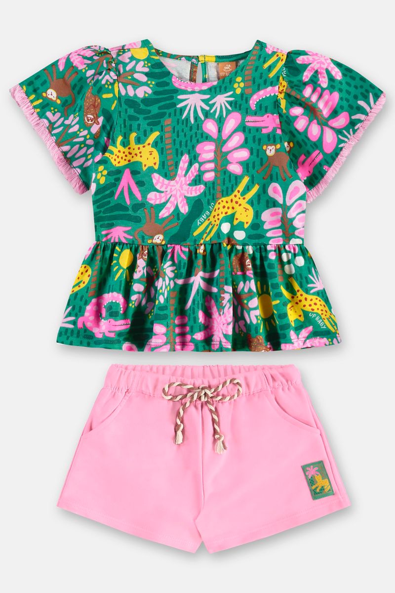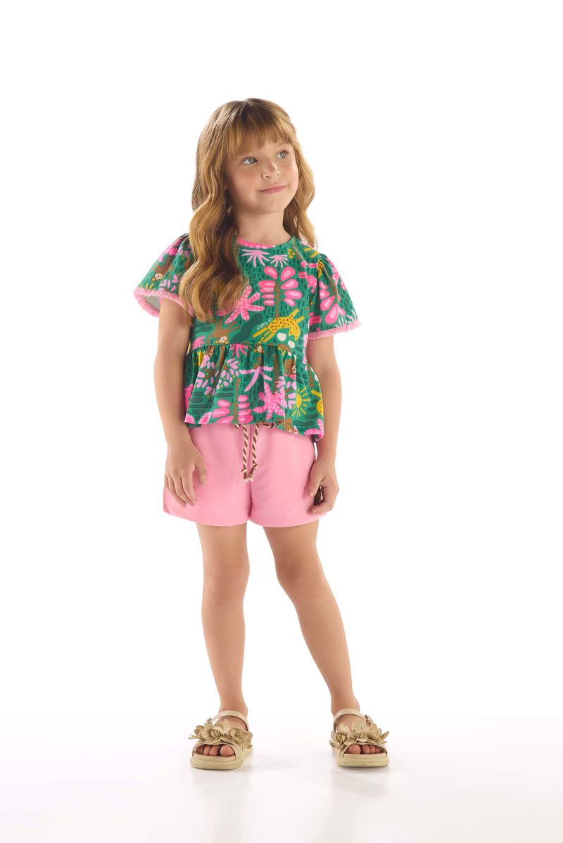 Conjunto para menina composto por blusa em meia malha (algodão) e short em moletom sem felpa (algodão e poliéster), peças que unem estilo e conforto. A blusa tem estampa colorida e divertida, mangas curtas com detalhe em renda e recorte franzido. Nas costas, possui abertura em formato de gota com botão e elástico, que facilita o vestir. O short conta com cós elástico, cordão decorativo na cintura e bolsos funcionais. Ideal para passeios, escola e momentos de lazer, garante liberdade e bem-estar no dia a dia.