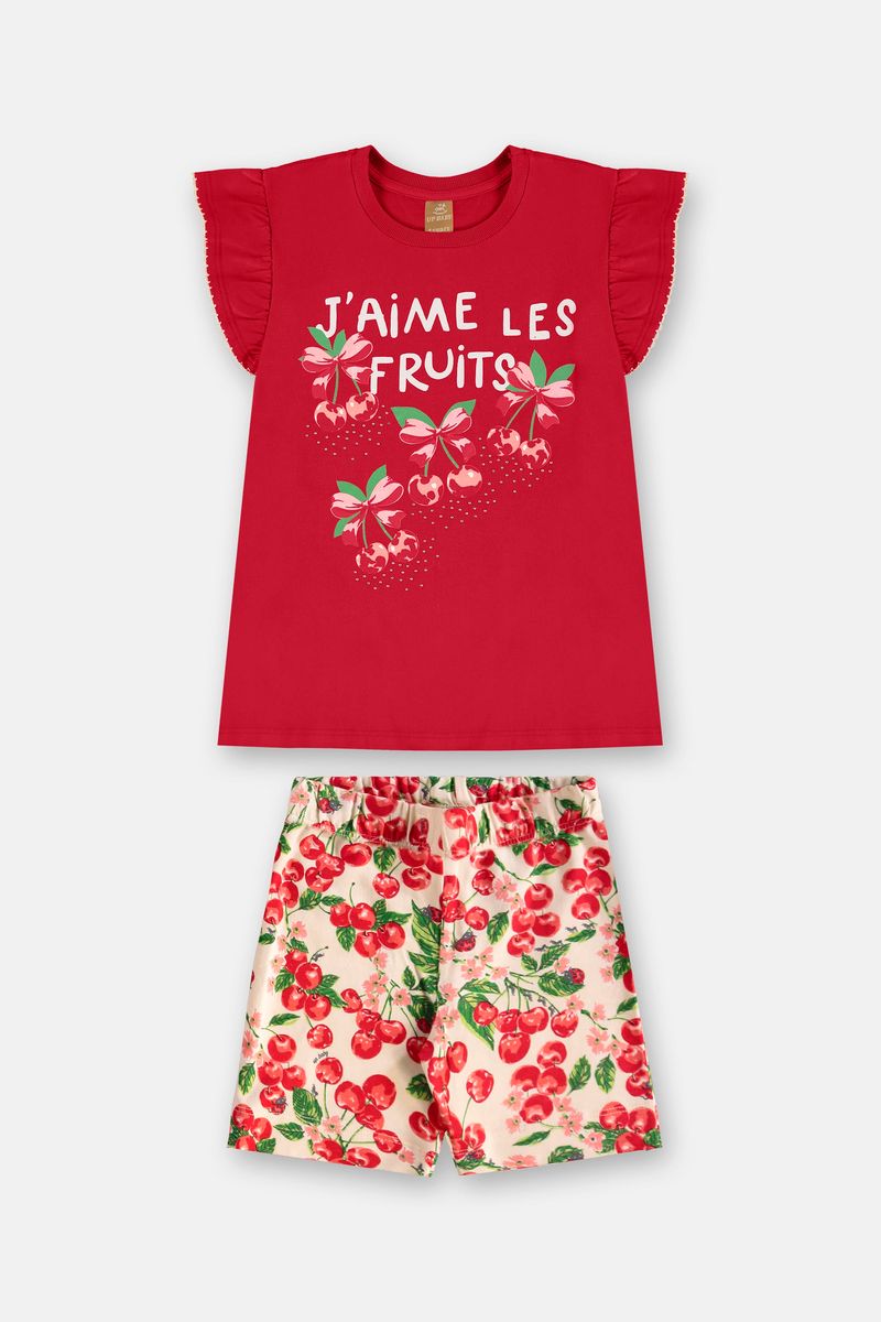 Conjunto para menina composto por blusa em meia malha e bermuda ciclista em cotton com elastano, peças que garantem maciez e conforto ao longo do dia. A blusa possui mangas curtas com franzido delicado e picueta, gola arredondada em ribana e estampa fofa com aplicação de strass, que deixa o visual mais divertido e delicado. A bermuda tem estampa por toda a peça, cós elástico e caimento justo ao corpo, acompanhando os movimentos da criança sem incomodar. Uma opção perfeita para brincar, passear ou usar em momentos casuais.
