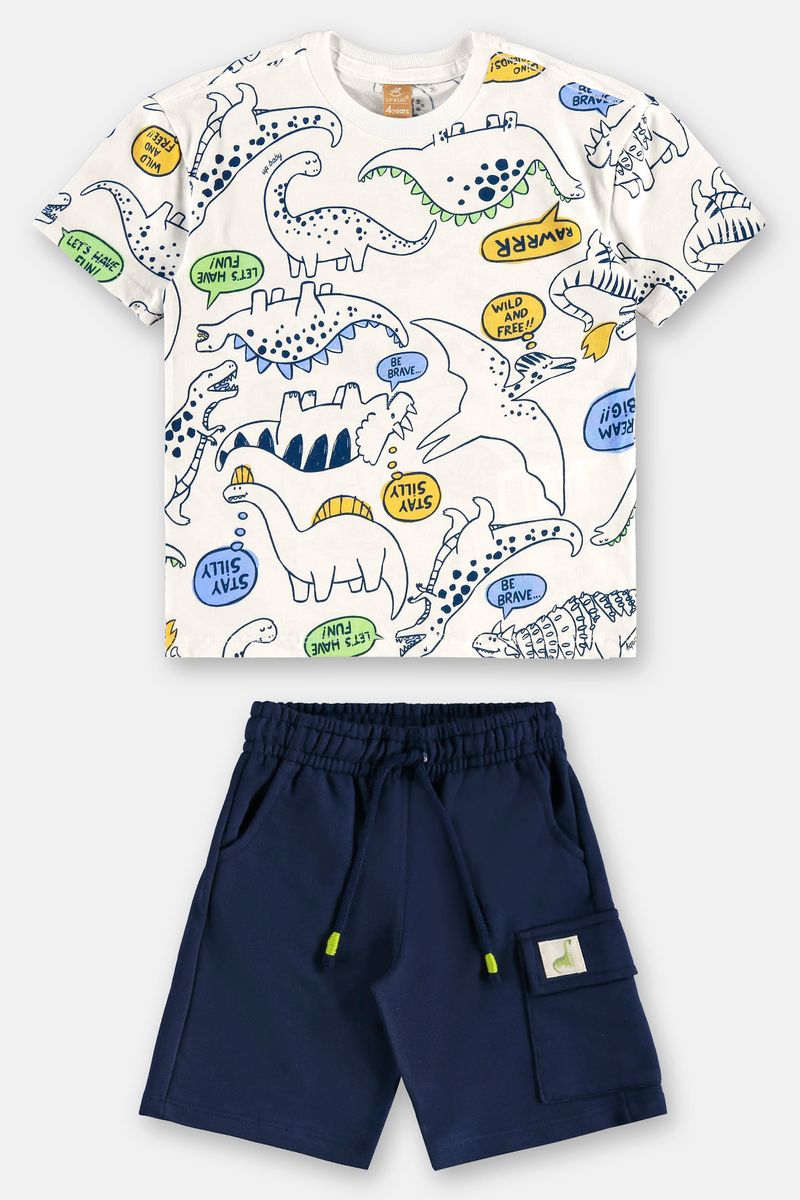 Conjunto para menino, ideal para os pequenos que gostam de conforto e estilo. A camiseta é confeccionada em algodão macio, possui gola redonda, mangas curtas, costura reforçada, além da estampa divertida e colorida que chama a atenção dos meninos. Já a bermuda composta em moletom sem felpa, tecido de algodão com poliéster, que oferece conforto e liberdade de movimento, conta com cós elástico, cadarço ajustável, bolso funcional para praticidade do dia a dia, possui também uma etiqueta decorativa proporcionando exclusividade a peça. Ideal para brincar, passear e compor produções casuais cheias de energia.