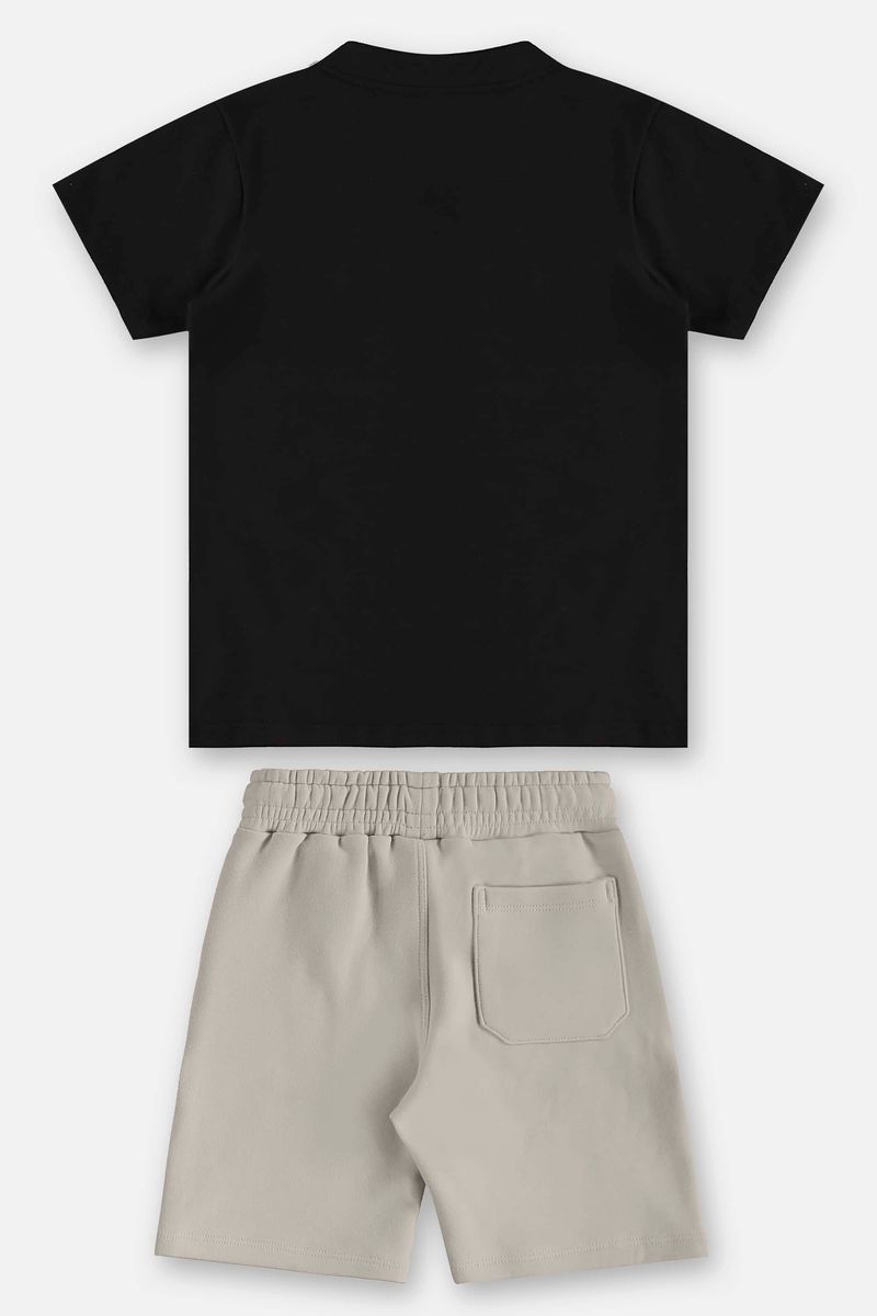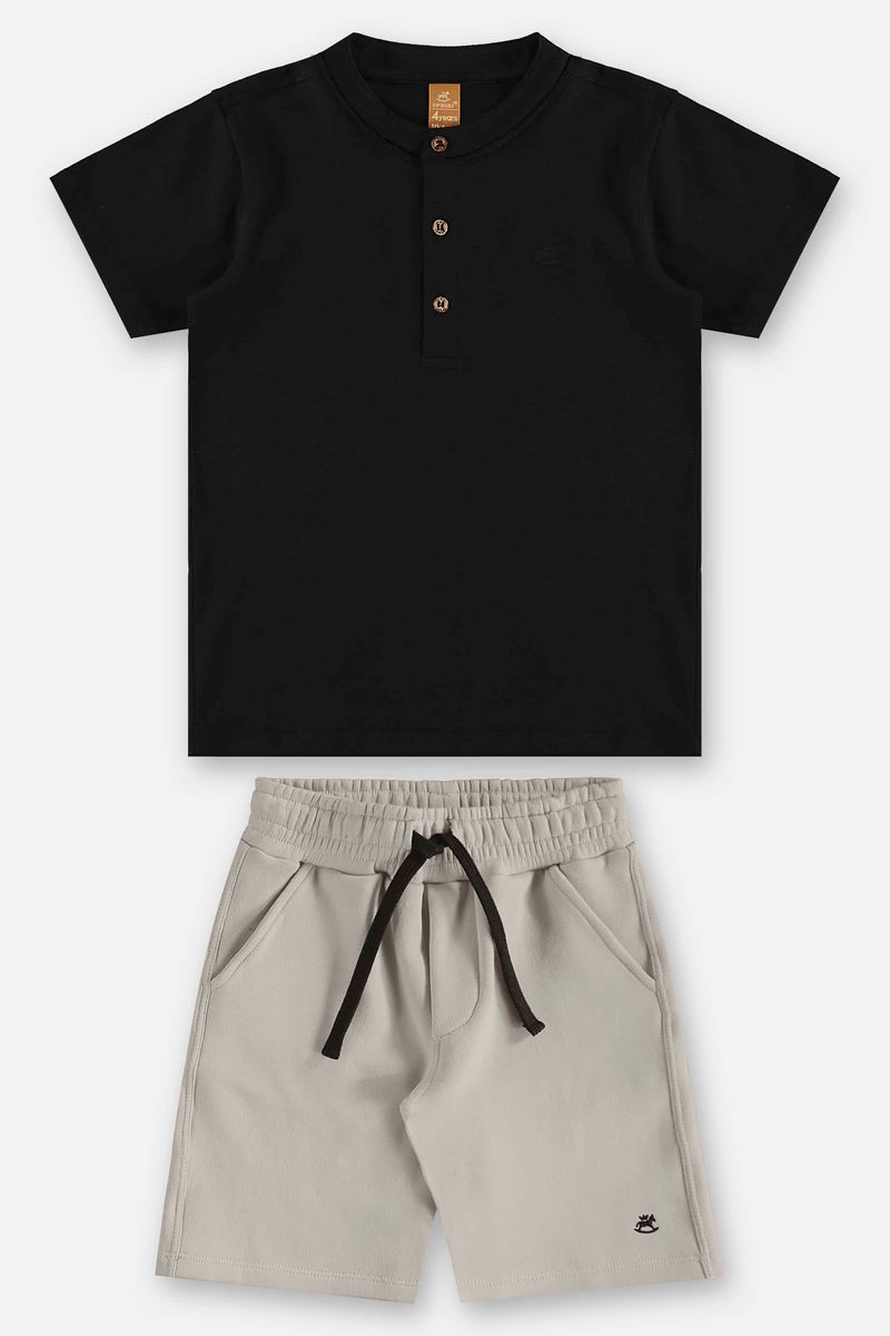 Conjunto infantil masculino confeccionado com tecidos leves, confortáveis e modernos. A camiseta é feita em malha piquet (algodão e elastano), com gola padre, abertura com botões e bordado com o ícone da marca no peito. Já a bermuda, é feita em malha alfaiataria (algodão, poliéster e elastano), e conta com cós elástico, cadarço funcional, bolsos funcionais, braguilha funcional e bordado. Um conjuntinho versátil, elegante e confortável para momentos casuais e especiais.