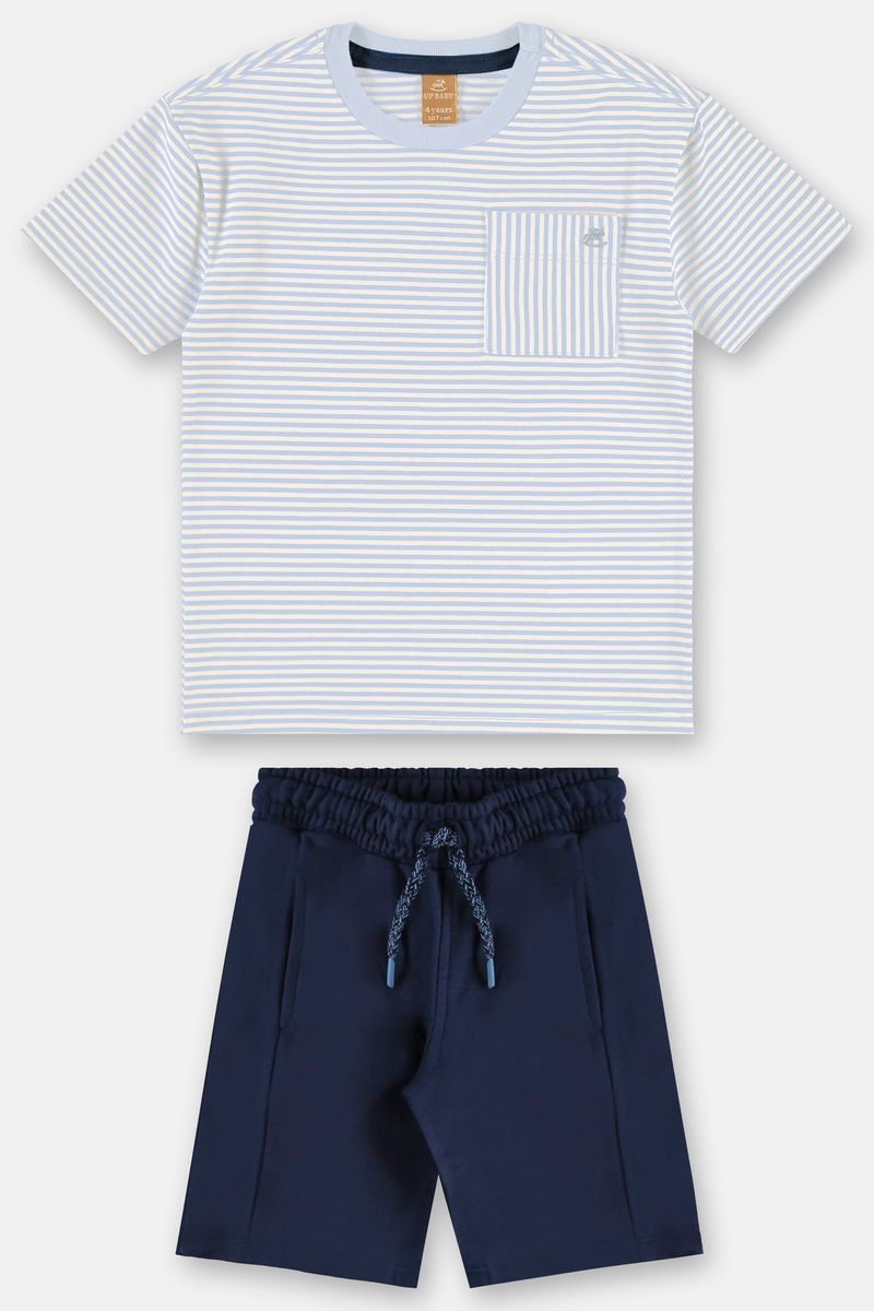 Conforto e praticidade para o dia a dia! Este conjunto infantil para menino vem com camiseta listrada em malha leve, bolso frontal e acabamento reforçado que garante mais durabilidade. Acompanha bermuda lisa com cós elástico e cadarço funcional, oferecendo ajuste perfeito ao corpo. Um visual leve e versátil, ideal para escola, passeios ou momentos de lazer. Garanta já e deixe seu pequeno preparado para todas as ocasiões.