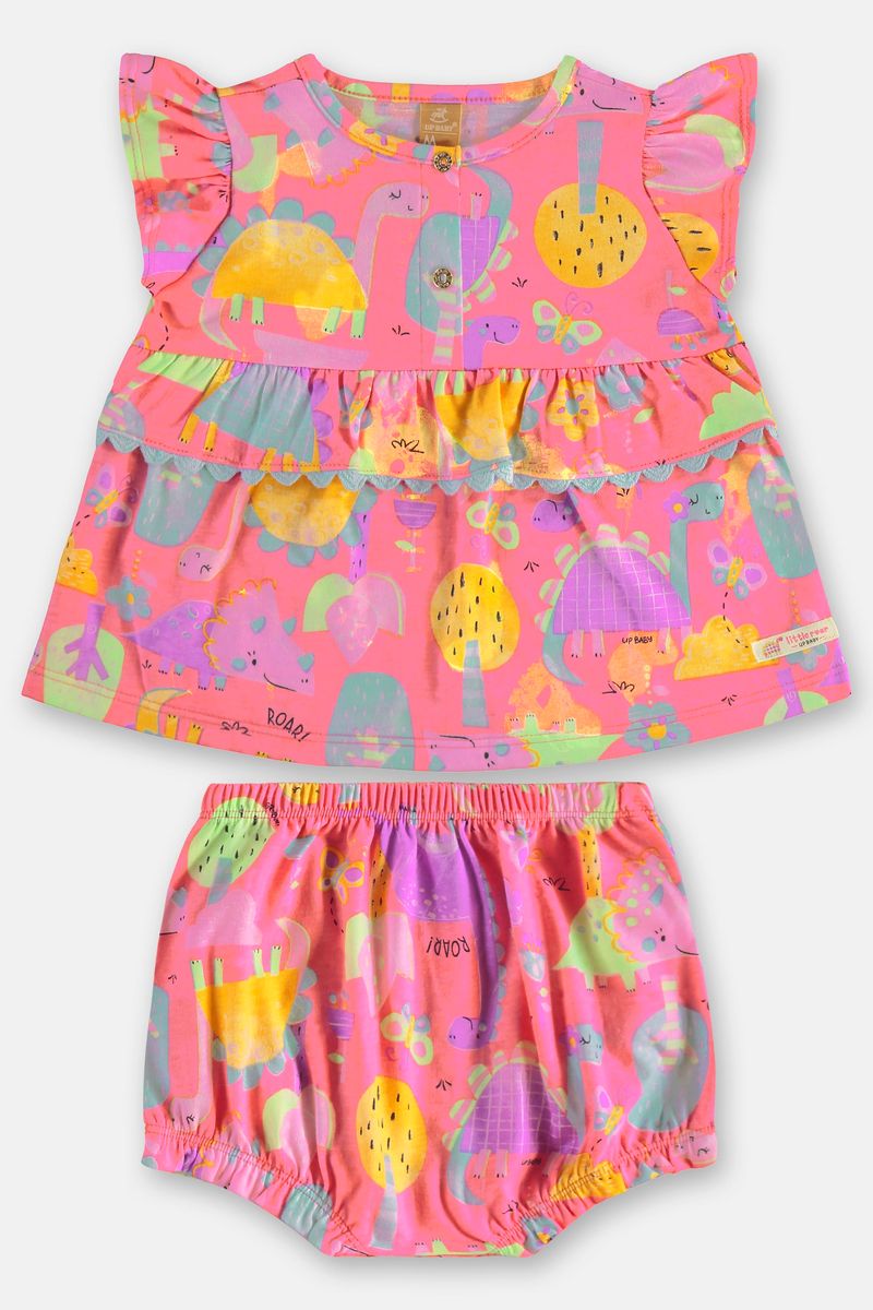 Leve, colorido e cheio de charme, o conjunto para bebê menina é composto por bata em meia malha com estampa divertida e calcinha combinando. A bata apresenta babado embutido com acabamento em sianinha e recorte franzido, garantindo um visual delicado. A abertura nas costas com botões de pressão facilita o vestir. Já a calcinha possui elástico confortável na cintura e nas pernas, oferecendo segurança e liberdade de movimento. Ideal para os dias de verão, com muito frescor e conforto.