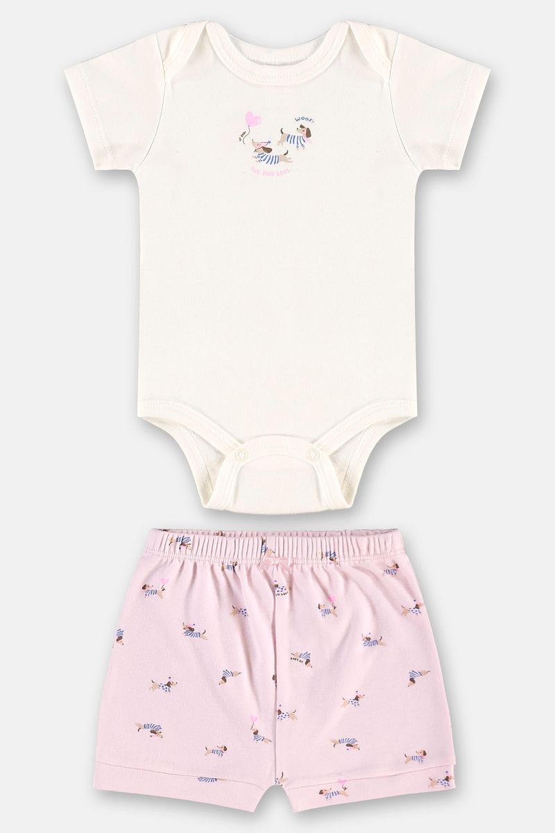 • Conjunto para bebê menina, confeccionado em suedine (algodão), proporciona conforto e toque suave para a pele delicada da pequena. O body possui estampa delicada, mangas curtas, gola arredondada e fechamento entrepernas com botões de pressão, facilitando o vestir e trocar. O short possui elástico na cintura com lacinho de cetim aplicado e estampa colorida com diversos ícones. Um conjunto essencial que une charme e praticidade para qualquer momento.