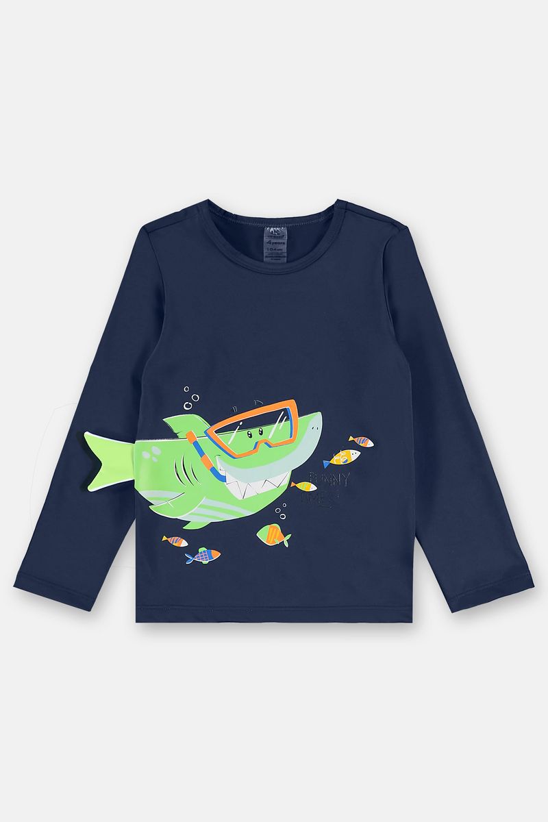 • Conjunto para menino, diversão e proteção garantidas, composto por camiseta com proteção UV FPS+50 e sunga boxer, em tecido de poliéster com elastano. A camiseta de manga longa, oferece cobertura adicional e conforto, possui costura reforçada e estampa criativa com aplique como complemento. Já a sunga conta com forro interno em poliamida para maior segurança e refresco, possui elástico na cintura, além da estampa colorida e divertida, garantindo um toque alegre ao look. Um conjunto prático e estiloso para aproveitar os dias de verão na praia ou na piscina.
