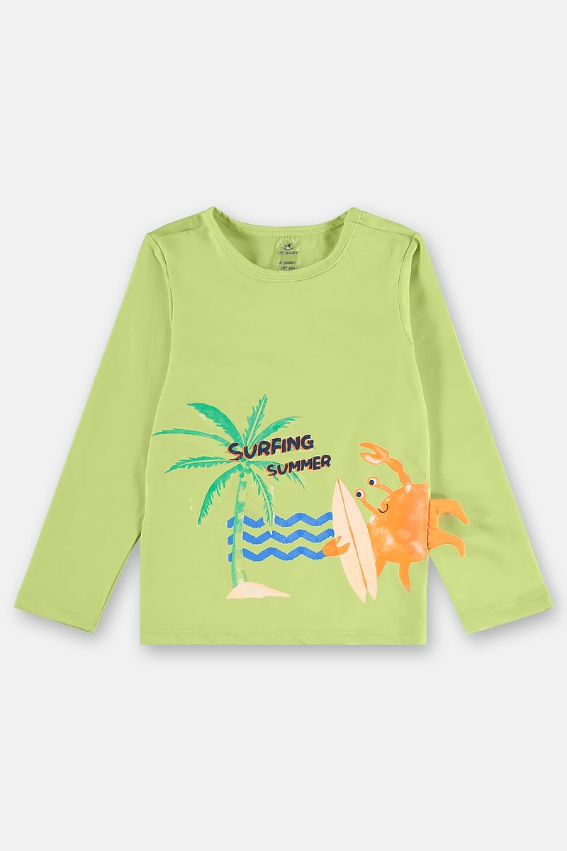 Conjunto para menino, diversão e proteção garantidas, composto por camiseta com proteção UV FPS+50 e sunga boxer, em tecido de poliéster com elastano. A camiseta de manga longa, oferece cobertura adicional e conforto, possui costura reforçada e estampa criativa com aplique como complemento. Já a sunga conta com forro interno em poliamida para maior segurança e refresco, possui elástico na cintura, além da estampa colorida e divertida, garantindo um toque alegre ao look. Um conjunto prático e estiloso para aproveitar os dias de verão na praia ou na piscina.