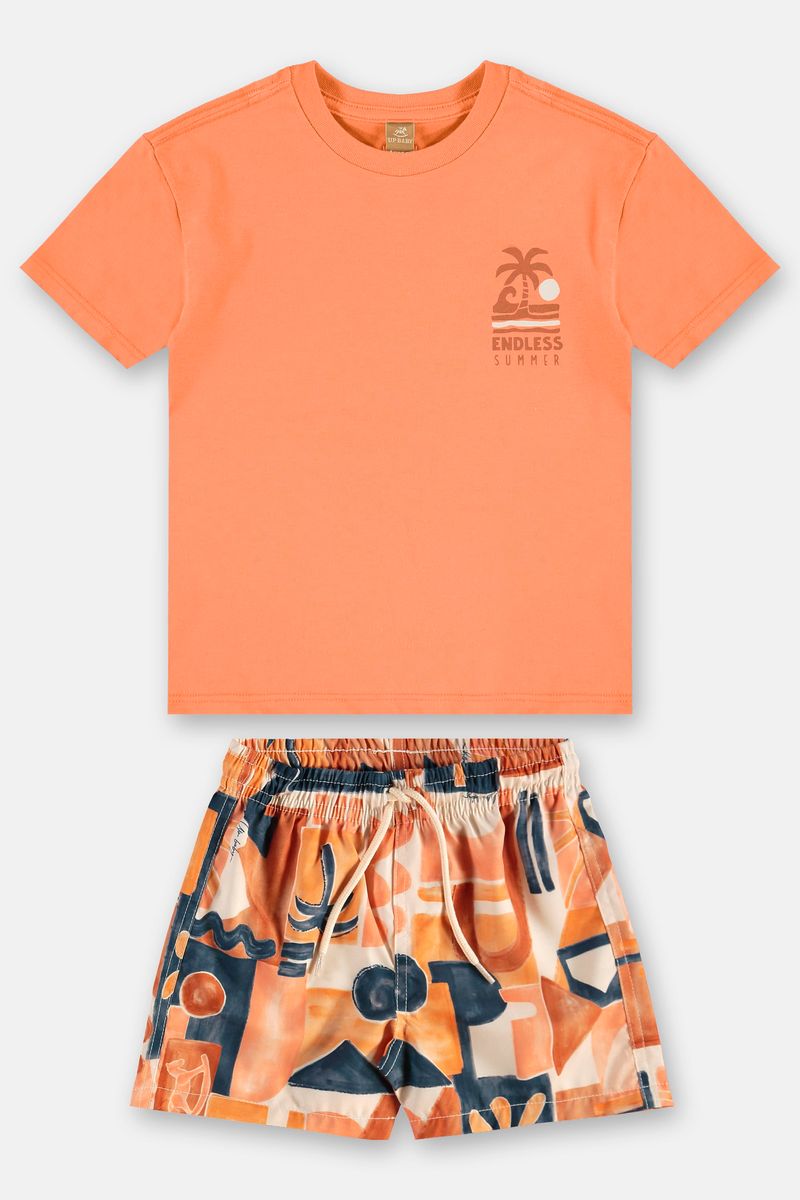 Conjunto Infantil para menino, composto por camiseta em algodão e short em microfibra, uma combinação leve e cheia de estilo. A camiseta de manga curta, conta com gola arredondada em ribana, costura reforçada e etiqueta decorativa centralizada nas costas, além da estampa como detalhe discreto oferecendo exclusividade para a peça. Acompanhando, o short possui cós com elástico, cadarço funcional, proporcionando ajuste ideal, conta também com estampa rotativa colorida e criativa. Um look perfeito para brincadeiras, passeios e momentos de lazer.
