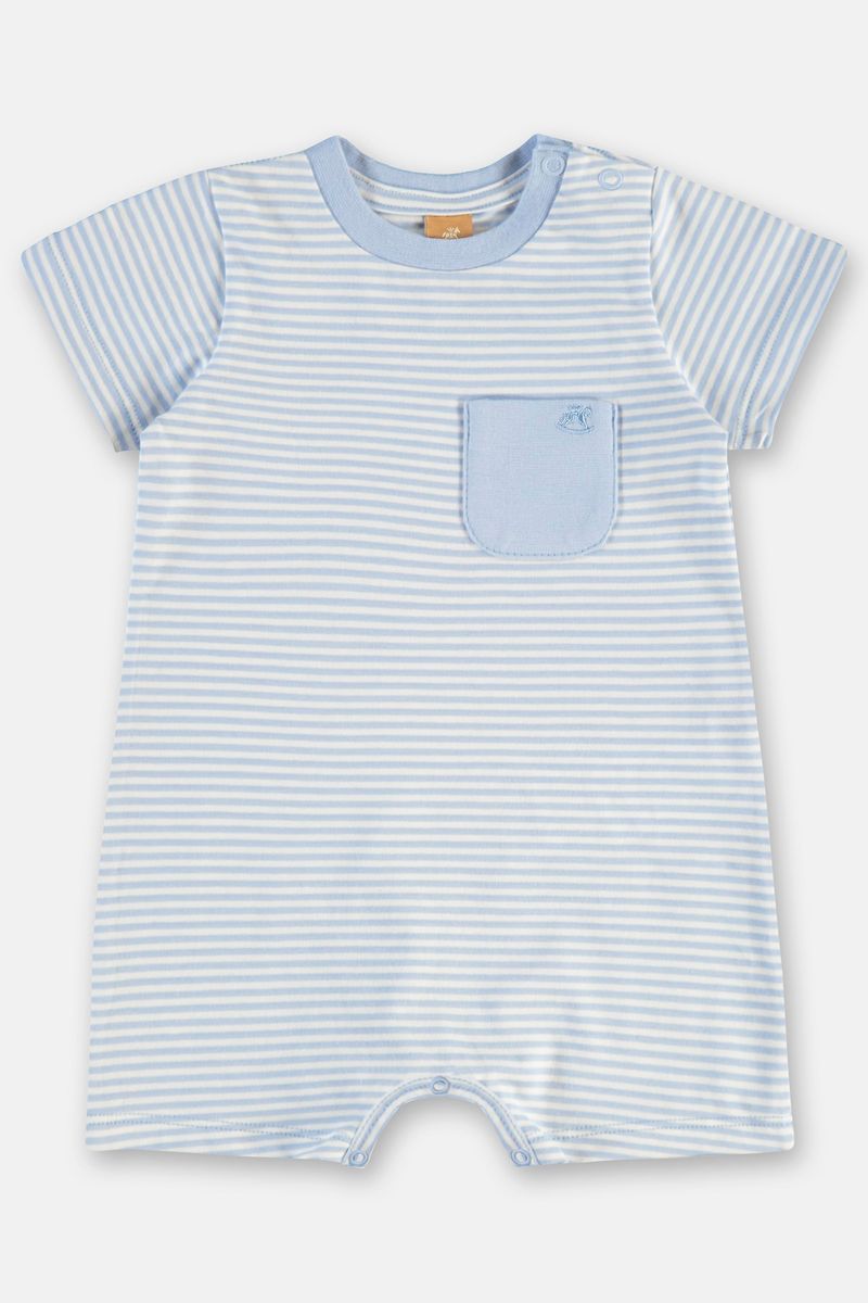 O macaquinho listrado para bebê menino combina estilo e praticidade para o verão. Confeccionado em cotton com elastano, proporciona maciez e caimento flexível. A malha em listras finas traz um toque moderno ao visual, enquanto o bolso com detalhe bordado e a abertura nos ombros com botões de pressão garantem funcionalidade. Na parte inferior, os botões facilitam as trocas. Ideal para passeios ou momentos de lazer, oferece conforto e charme.