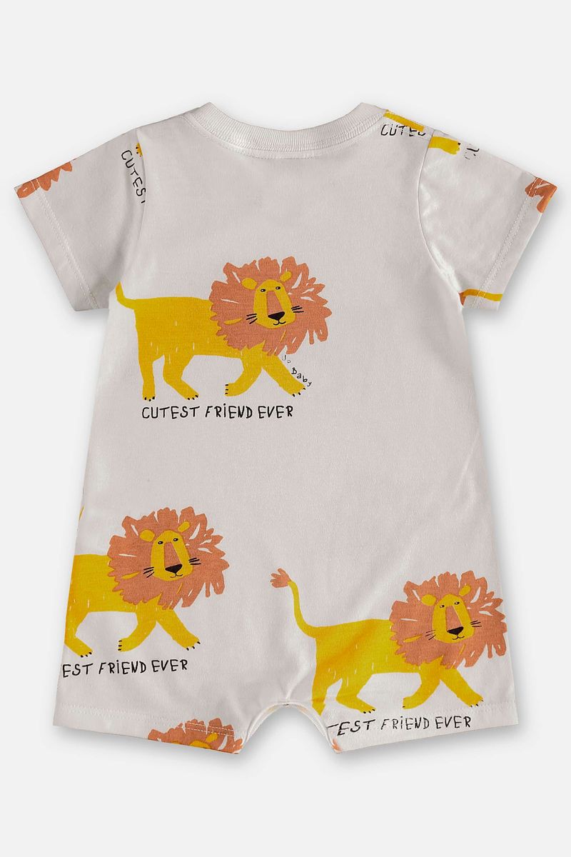 Macaquinho para bebê menino confeccionado em meia malha de algodão, tecido leve, macio e fresco, perfeito para deixar os pequenos confortáveis e cheios de estilo. A estampa divertida de leões traz um ar lúdico e fofo ao visual. Possui abertura no ombro e entrepernas com botões de pressão, facilitando na hora de vestir e trocar o bebê, garantindo praticidade para os pais. É uma peça essencial para manter o bebê bem vestido e à vontade em todas as ocasiões.
