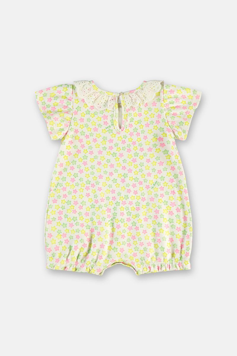 Delicado e funcional, o macaquinho em suedine para bebê menina é ideal para os dias quentes. Com estampa fofa e cores suaves, o modelo apresenta mangas franzidas, gola com acabamento em renda e abertura inferior com botões de pressão, facilitando a troca. O elástico nas pernas garante ajuste confortável, enquanto o tecido macio proporciona bem-estar durante todo o dia. Um look completo para o dia a dia, cheio de leveza e charme.