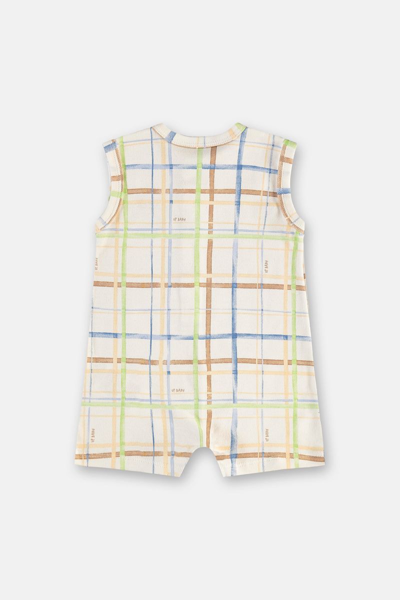 Este macaquinho para bebê menino é ideal para os dias quentes. Confeccionado em suedine leve, garante toque macio e conforto prolongado para a pele delicada do bebê. O modelo sem mangas possui abertura frontal com botões e acabamento em debrum no decote e nas cavas, oferecendo praticidade na hora de vestir. O destaque é a estampa xadrez multicolorida com bordado delicado no peito, que acrescenta charme ao visual. Perfeito para passeios ou para ficar em casa, é um item versátil e estiloso para o guarda-roupa do seu pequeno.