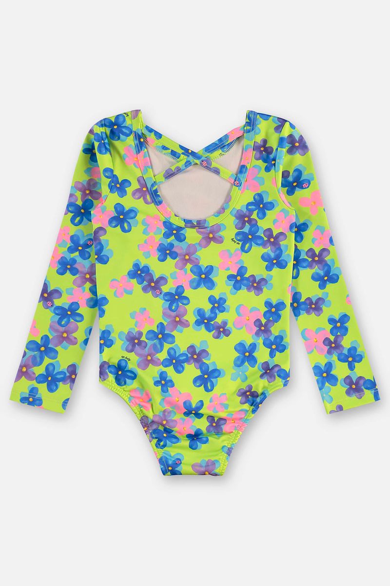 Maiô infantil para menina, em malha com proteção FPS +50, com toque macio e elasticidade confortável. Possui mangas longas, estampa alegre e forro interno para maior segurança. A abertura inferior com botões de pressão facilita o vestir nos tamanhos menores. Um look divertido e funcional para as pequenas aproveitarem os dias de sol com mais liberdade.