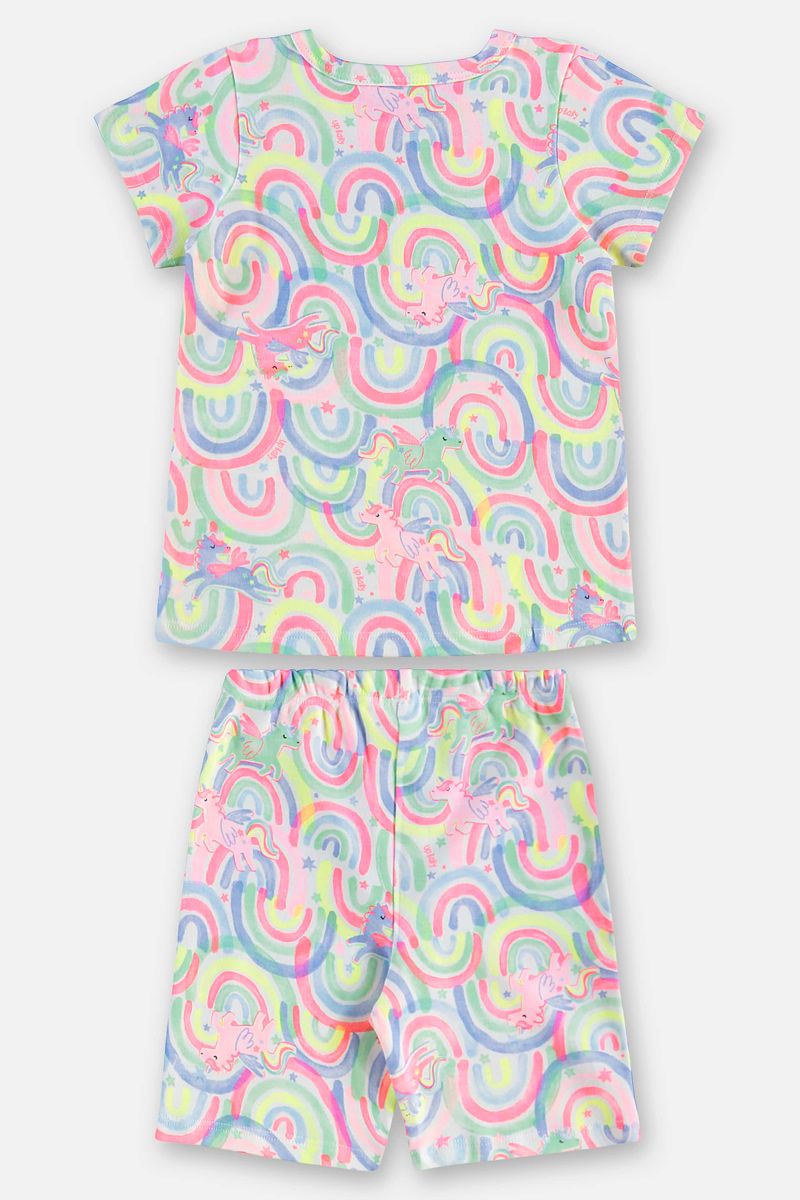 Conjunto de pijama infantil para menina, com blusa e bermuda em suedine macio, ideal para a pele sensível das crianças. A modelagem confortável e o tecido respirável permitem uso prolongado, seja para dormir ou brincar em casa. As estampas divertidas e coloridas tornam o visual alegre e moderno.