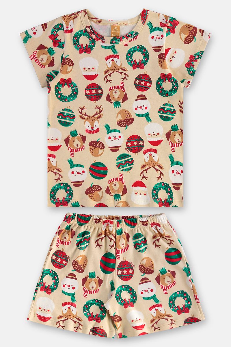 O conjunto pijama infantil traz conforto e praticidade para o dia a dia. Confeccionado em suedine leve, conta com blusa de manga curta com estampa de Natal e short com cós elástico que se ajusta ao corpo com suavidade. Ideal para noites tranquilas de sono ou momentos especiais em casa. Um modelo versátil, colorido e cheio de estilo para o verão.