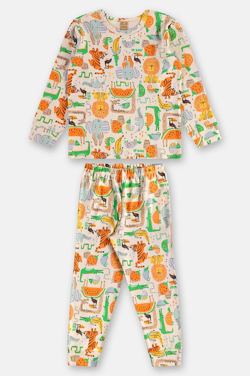 PijamasPijama Longo Infantil Unissex em Suedine Estampado (Off White) Up Baby