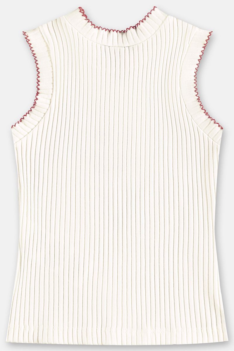 Regata infantil confeccionada em ribana canelada, tecido de algodão com elastano que garante maciez e caimento ajustado ao corpo da pequena. Possui acabamento em picueta reforçado no decote e nas cavas, além de bordado frontal em paetê, que acrescenta um toque divertido e delicado ao visual. Leve e confortável, é ideal para compor looks casuais de verão.