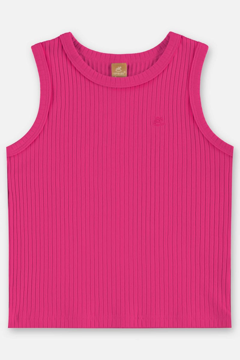 Regata infantil para menina confeccionada em ribana canelada macia com elastano, ideal para o dia a dia. Possui modelagem confortável, gola e cavas delicadas e acabamento reforçado na barra. Uma peça versátil, perfeita para compor looks fresquinhos na primavera com charme e leveza.