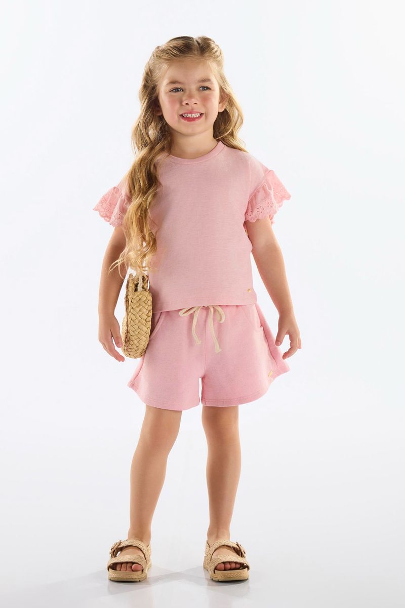Opção charmosa e confortável para o guarda-roupa das meninas. O short é confeccionado em moletom leve com toque de linho, ideal para dias mais quentes. O cós clochard com elástico garante ajuste perfeito, enquanto o cordão decorativo adiciona charme. Conta com bolsos funcionais e acabamento reforçado, priorizando conforto e praticidade no dia a dia.