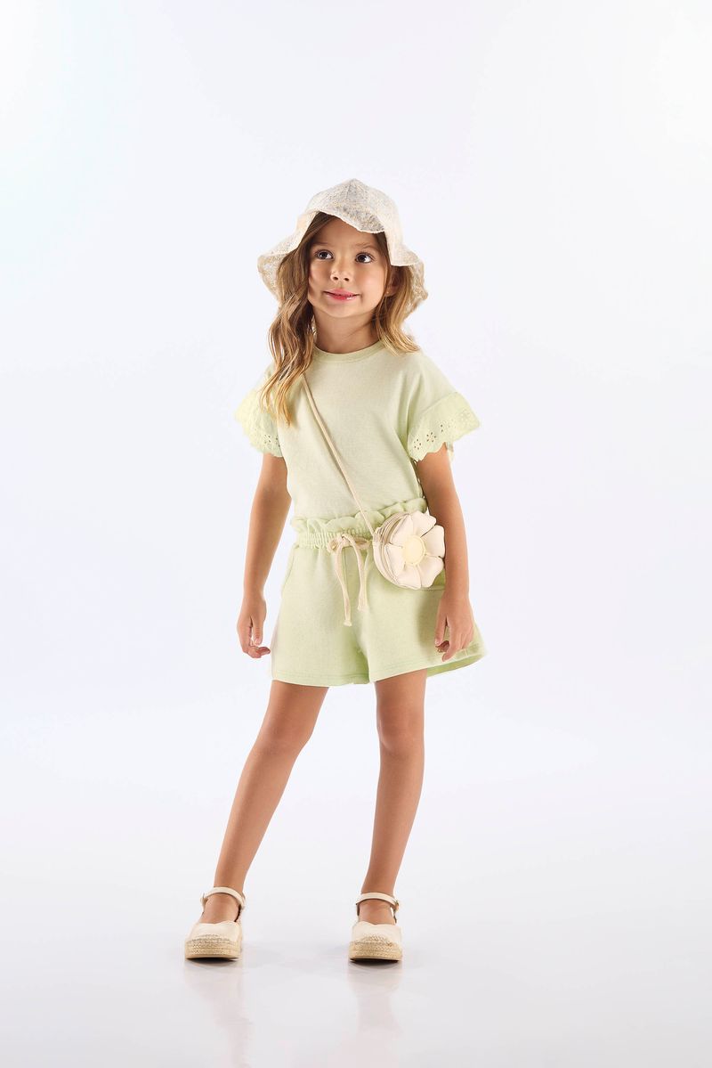 Opção charmosa e confortável para o guarda-roupa das meninas. O short é confeccionado em moletom leve com toque de linho, ideal para dias mais quentes. O cós clochard com elástico garante ajuste perfeito, enquanto o cordão decorativo adiciona charme. Conta com bolsos funcionais e acabamento reforçado, priorizando conforto e praticidade no dia a dia.