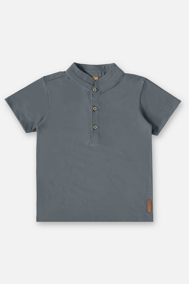 Conjunto infantil para meninos composto por uma Camiseta portuguesa confeccionada em tecido piquet e por uma Bermuda em microfibra com elastano estampada. A Camiseta possui mangas curtas, abertura peitilho com botões com caseados na vertical, além de cor básica, que deixa a peça ainda mais elegante. A Bermuda possui elástico e cadarço funcional na cintura, além disso, conta com estampa de dinossaurinhos e outros elementos pela peça toda.